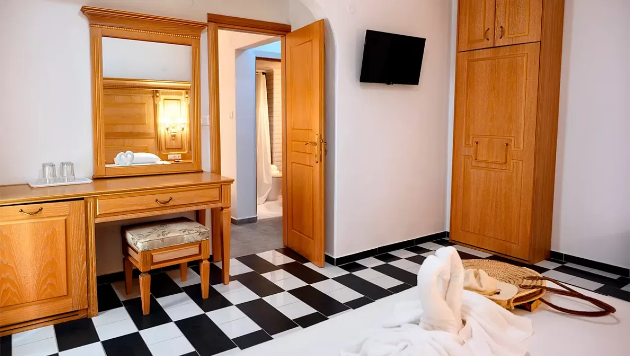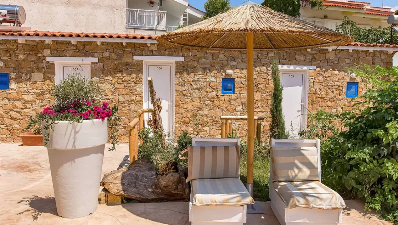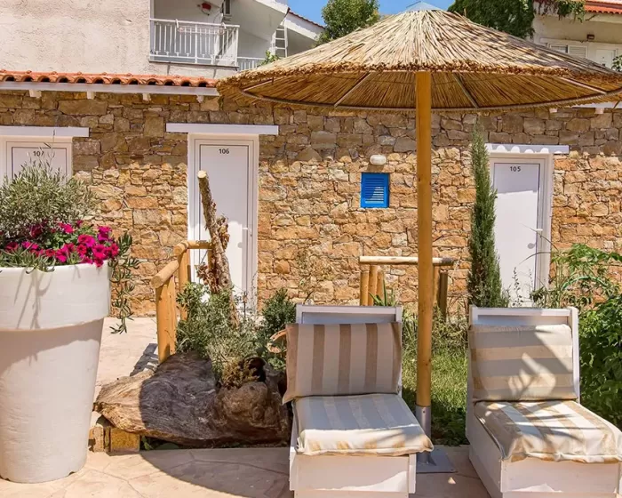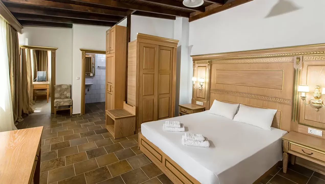 Ukupno 37 soba: Economy Triple Room (~25 m²), Bungalow Triple Room (~18 m²), Bungalow Double Room (~18 m²), Double Room With Side Sea View (~18 m²), Triple Room With Side Sea View (~20 m²), Family Bungalow (~25 m²), Family Room With Side Sea View (~38 m²), Family Suite Pool View (~45 m²), Executive Suite Front Sea View (~35 m²), Junior Suite Front Sea View (~30 m²).