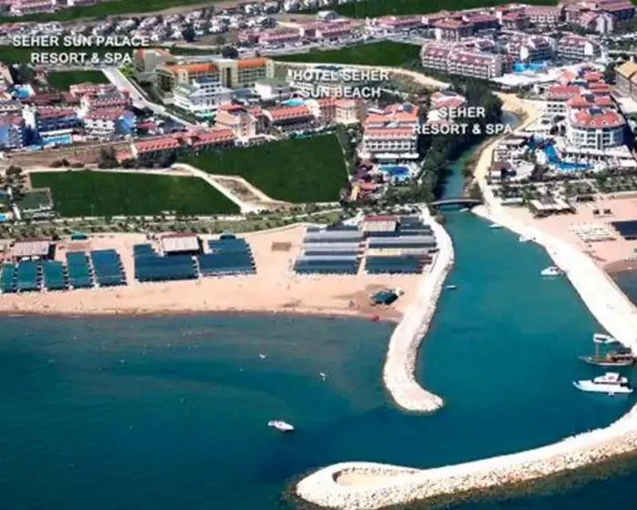 Hotel Seher Sun Beach Side se nalazi na oko 70 metara udaljenosti od privatne peščane plaže i oko 5 kilometara od letovališta Side. Aerodrom u Antaliji je udaljen oko 65 kilometara.