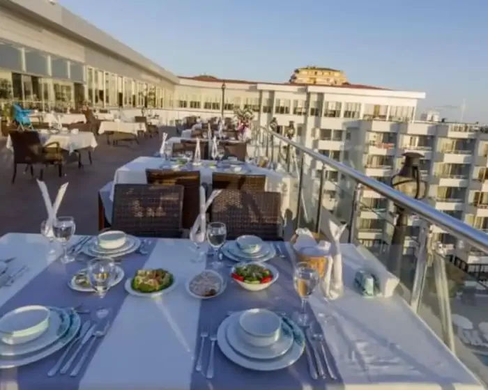 Glavni restoran na bazi otvorenog bufea, jedan A'la Carte restoran, bar pored bazena, bar na plaži. Posebno se plaća prema pravilima hotela: usluga lekara na zahtev, frizer, usluga pranja veša, telefon, fax, internet kafe, kompjuterske igrice, Wi Fi u lobiju i sobama uz doplatu.Otvoren i zatvoren (ne radi tokom letnje sezone) bazen sa bazenom za decu, tobogan, stoni tenis, fitnes, tursko kupatilo, odbojka na plaži, mini klub za decu od 4 do 12 godina, dečije igralište. Posebno se plaća prema pravilima hotela: sportovi na vodi, sauna, parna soba, masaža.