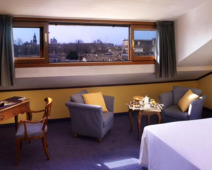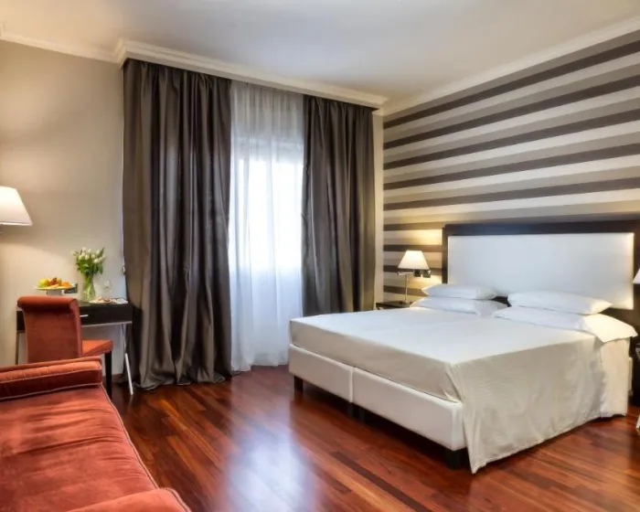 Sobe u hotelu sadrže klima uređaj i centralno grejanje. Balkon ili terasa je među standardnim sadržajima soba. Sobe imaju bračni krevet, krevet queen size ili krevet king size. Dodatni kreveti mogu se zatražiti. Sef, minibar i radni sto su takođe dostupni. Gosti će takođe pronaći mini frižider među standardnim funkcijama. Direktni birajući telefon, televizor sa satelitskim/ kablovskim kanalima, radio i WiFi (bez dodatne naplate) osiguravaju optimalnu udobnost. Gosti će takođe pronaći papuče u svojim sobama. Kupatila su opremljena tušem, kadom i bidetom. Fen za kosu, bade mantili i telefon su dostupni za svakodnevnu upotrebu. Za dodatnu udobnost u kupatilima, gostima su na raspolaganju kozmetički proizvodi. Porodične sobe su dostupne za roditelje sa decom.
