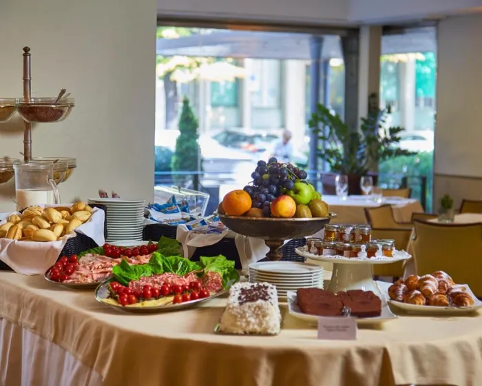 Različite opcije za obroke su dostupne, uključujući prostoriju za doručak, kafić i bar. Gosti mogu uživati u kulinarskim specijalitetima ne pušeći u restoranu sa klima uređajem, koji ima stolice za decu. Za doručak, gosti služe se sami na bogatom bifeu. Različita jela mogu se naručiti a la carte za ručak i večeru.