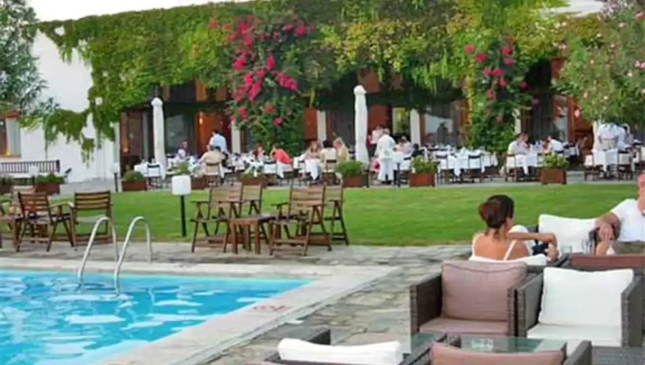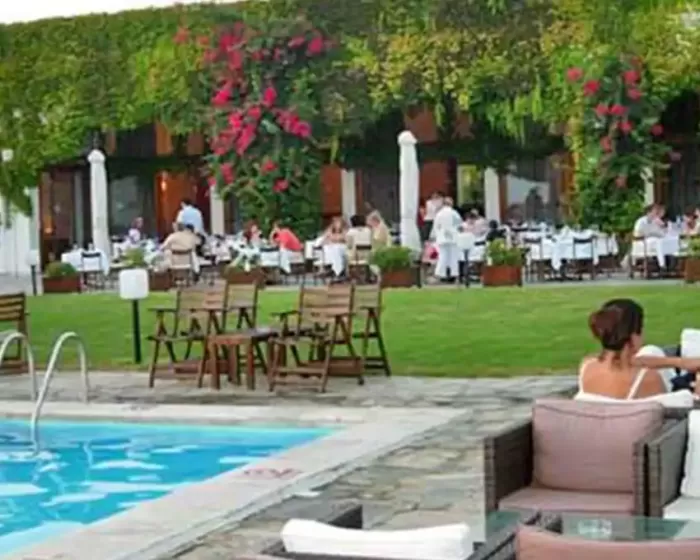 otvoreni bazen sa ležaljkama i suncobranima, lobi, recepcija, tiha sala, sala za sastanke, pool bar, igraonica za decu, restoran, letnja bašta, taverna, parking