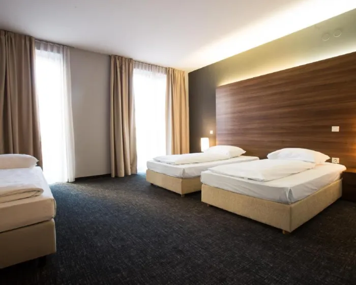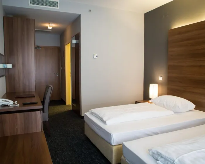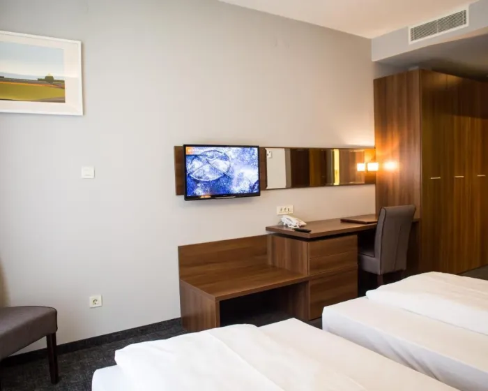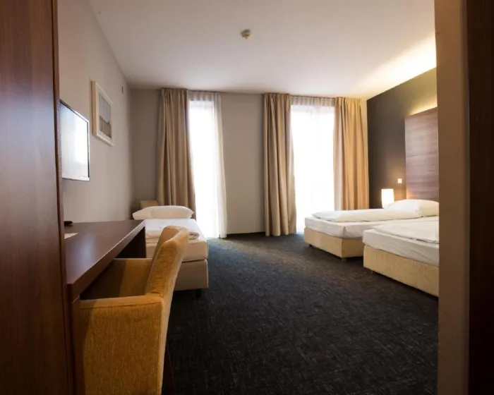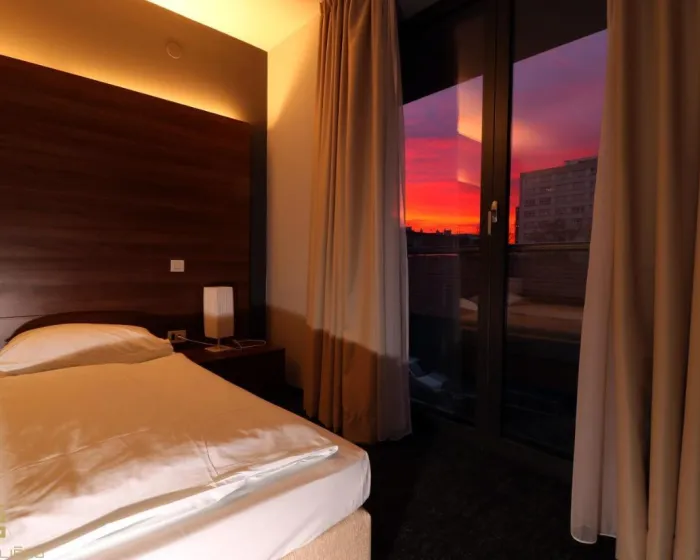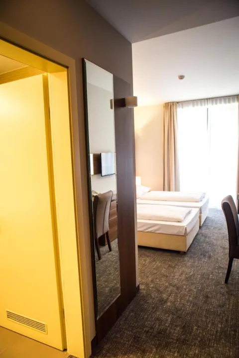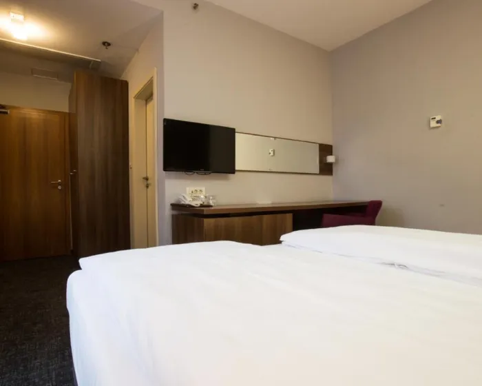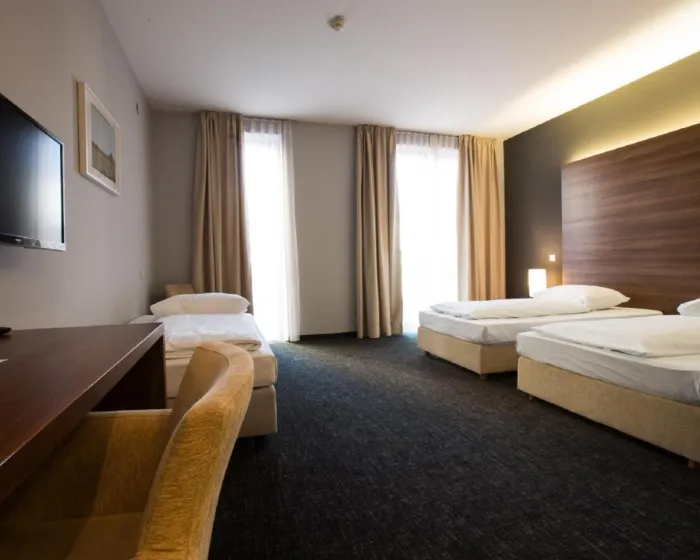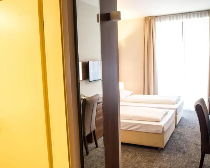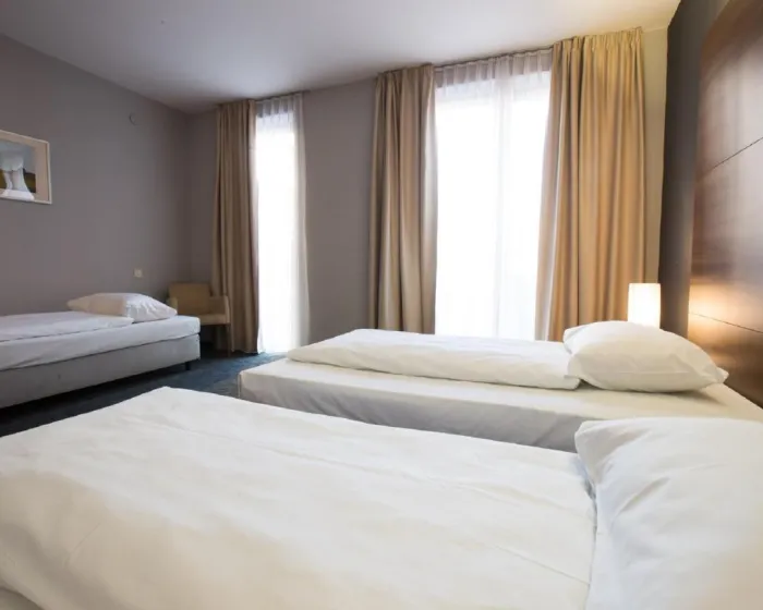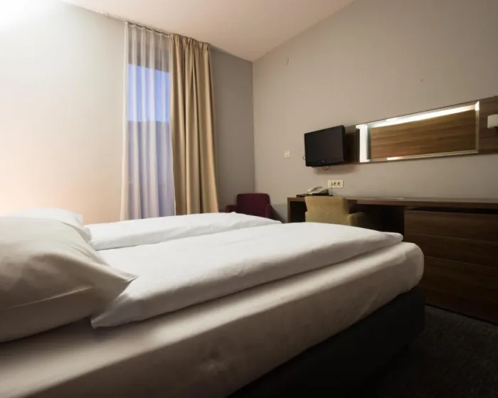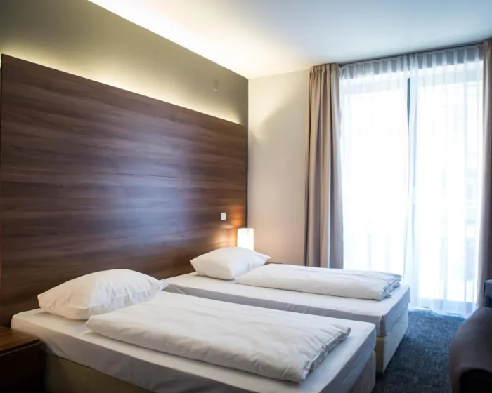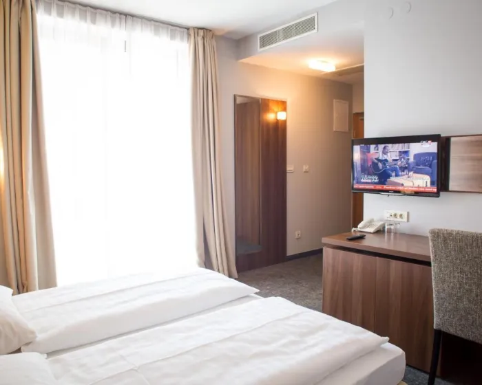 Sobe su opremljene klima uređajem i centralnim grejanjem. Gosti mogu uživati u pogledu na ulicu sa balkona ili terase. Sve sobe su sa tepihom i uključuju bračni krevet ili krevet queen size. Dodatni kreveti mogu biti zatraženi. Radni sto je obezbeđen. U sobama se nalazi čajna kuhinja. Telefon, televizor sa satelitskim/kablovskim kanalima i WiFi (bez dodatne naplate) osiguravaju optimalnu udobnost. Kupatila uključuju fen za kosu i opremljena su tušem i kadom. Kao posebna pogodnost, kupatila su opremljena kozmetičkim proizvodima i izborom peškira. Hotel ima porodične sobe i sobe za nepušače.