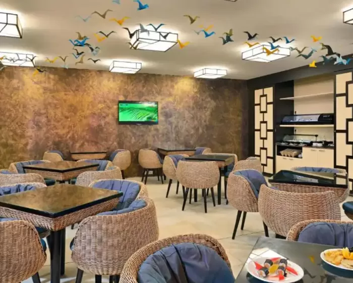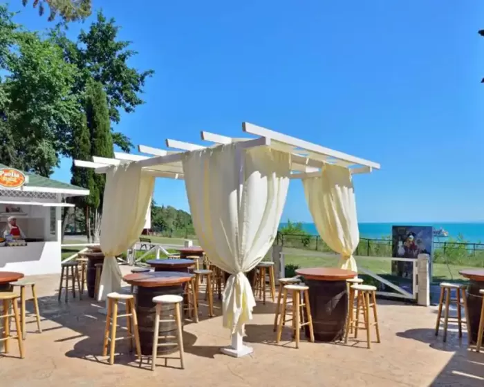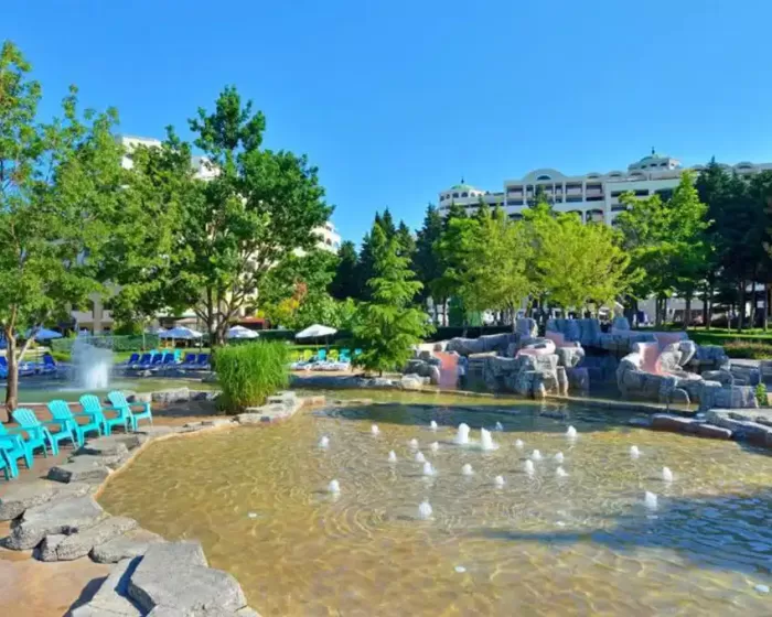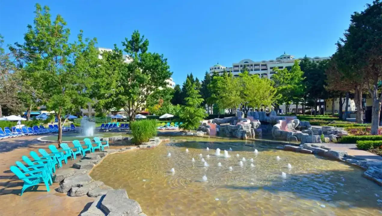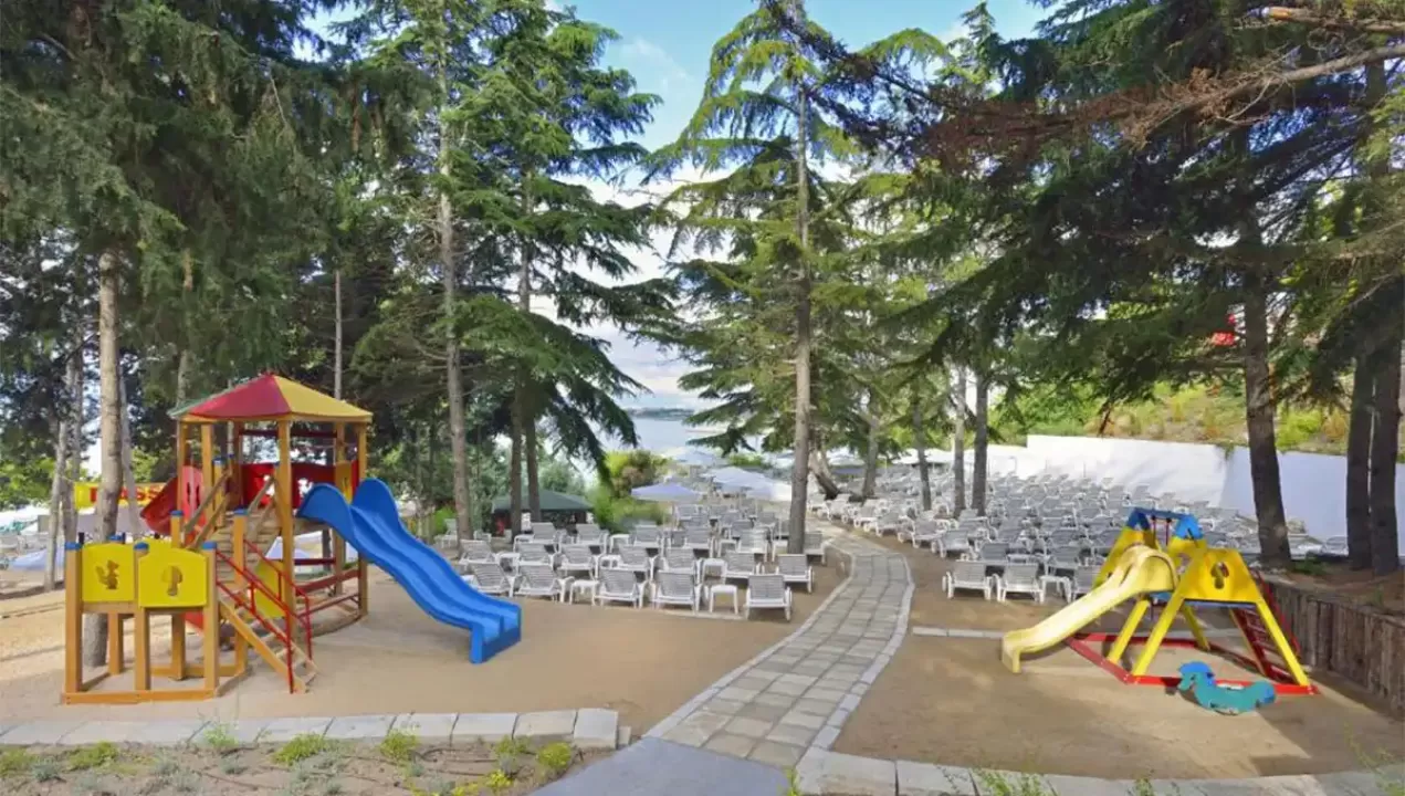 recepcija, lobby bar, restoran, bazen, zatvoreni bazen, bar pored bazena, disko-klub, spa centar, tursko kupatilo, sauna, solarijum, fitnes centar, bilijar, stoni tenis, stoni fudbal, pikado, klub za decu, dečiji zamak sa toboganima, 3 teniska terena, tereni za odbojku, košarku, fudbal, igralište, šah table po parkovima, vodeni sportovi, doktor, internet sala, obezbedjen parking, menjačnica, perionica veša