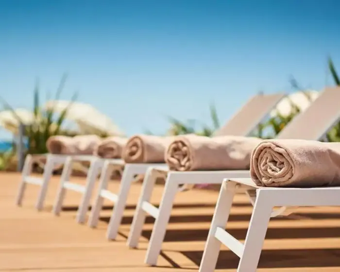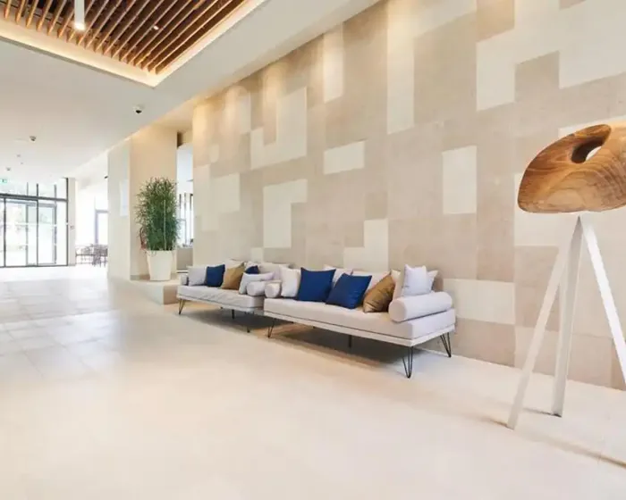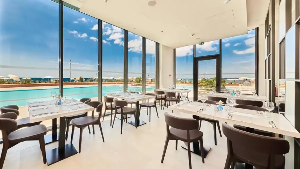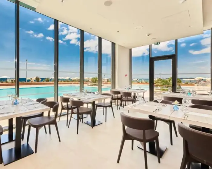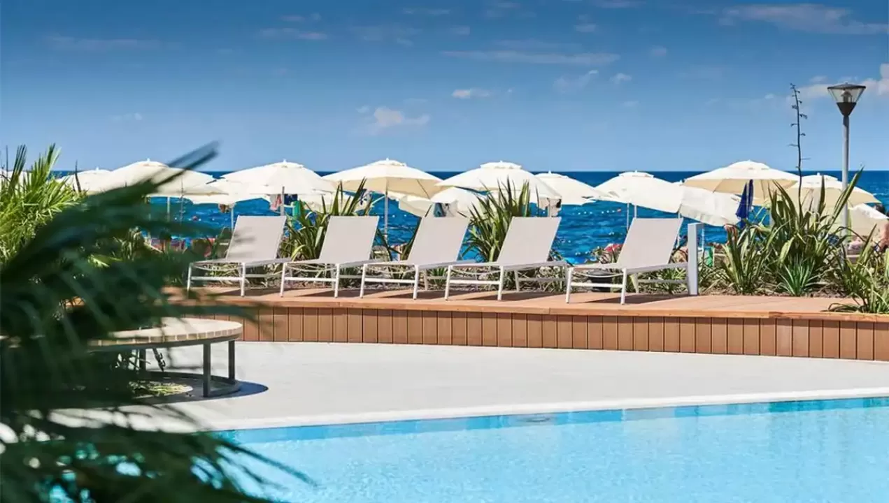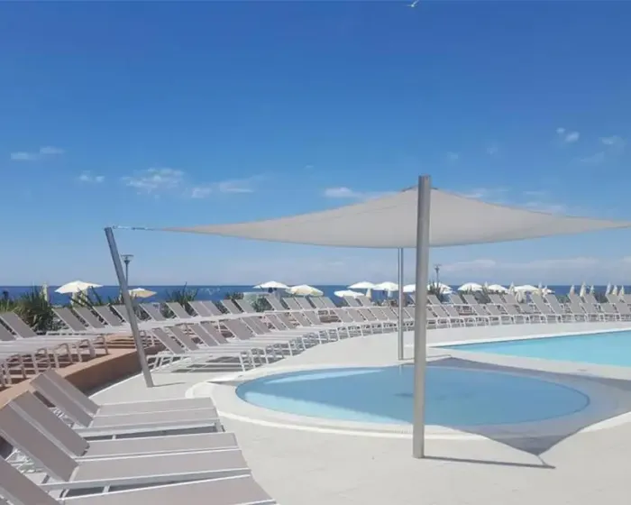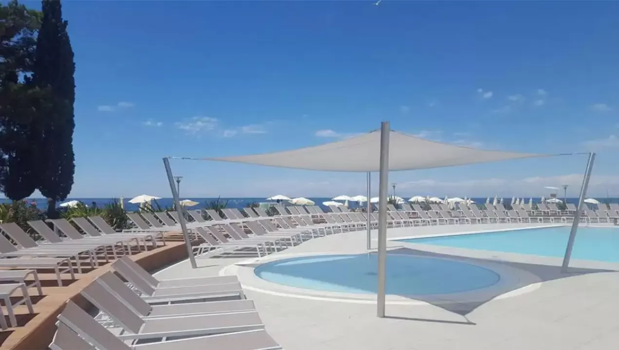 recepcija, lobi bar, buffet restoran, otvoreni bazen, ležljake i suncobrane oko bazena (ograničen broj), terasa za sunčanje, kiosk, suvenirnica, wifi internet, internet kutak, biznis kutak, bankomat, TeslaCar charger, iznajmljivanje električnih bicikala, parking (1€ dnevno, obavezna najava)