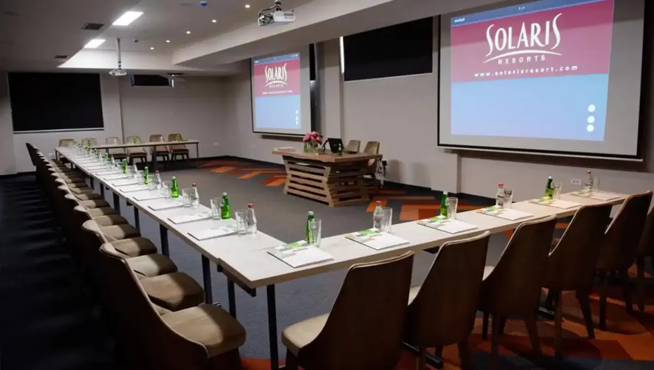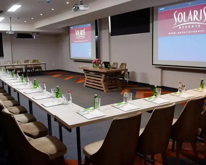 Hotel Solaris Resort Vrnjačka Banja je moderno opremljen hotel u turističkoj ponudi Vrnjačke Banje koji poseduje 4 zvezdice. Smešten je u mirnom delu banje, u neposrednoj blizini banjske promenade i svih turističkih dešavanja i sadržaja. Hotel Solaris u ponudi ima luksuzne apartmane i porodične sobe sa elegantnim enterijerom, restoran "Biber", aperitiv bar, wellness centar, salu za seminare, sopstveni natkriveni parking prostor i dečiju igraonicu "Zvončica". Moderni wellness&spa centar gostima nudi sadržaje kao što su jedinstvena hladna soba, finska i ruska sauna, slana soba, jacuzzi, tople klupe, tursko kupatilo, mrvljeni led, aroma tuševi, tropska kiša i fitness sala.Dozvoljen boravak malim kućnim ljubimcima, na upit.Ishrana: doručak, večera- švedski sto.
