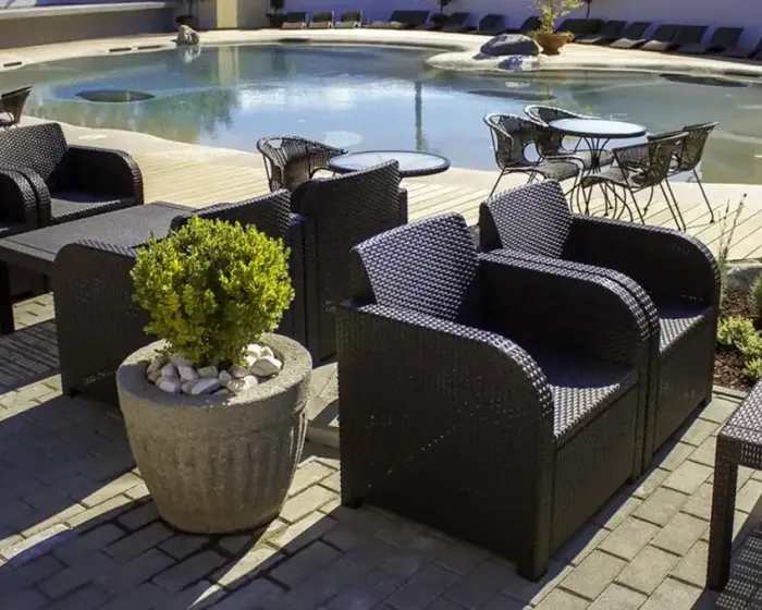 recepcija, lobby bar, akva bar, pansionski restoran, restoran "Biber", zatvoreni bazen sa slanom vodom, dva otvorena bazena, wellness centar, sala za seminare, dečija igraonicu "Zvončica", sopstveni natkriveni parking prostor