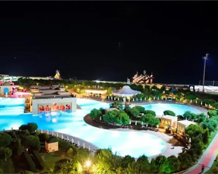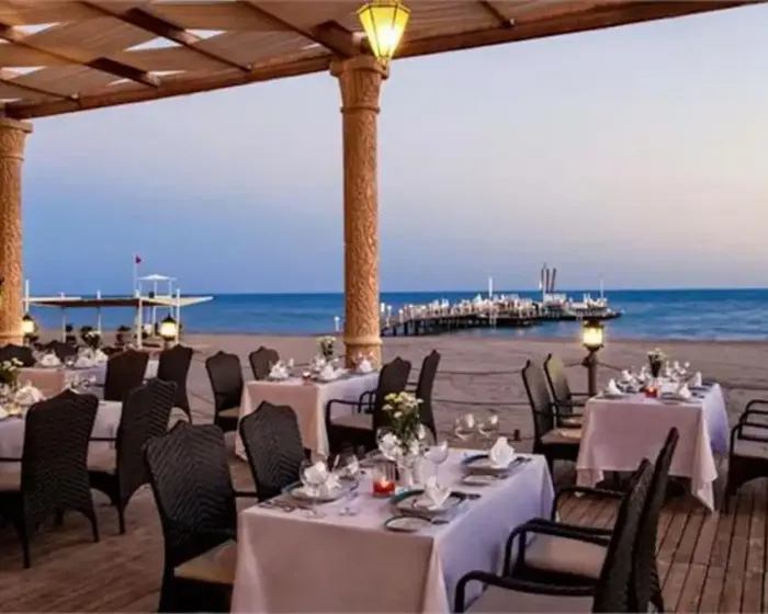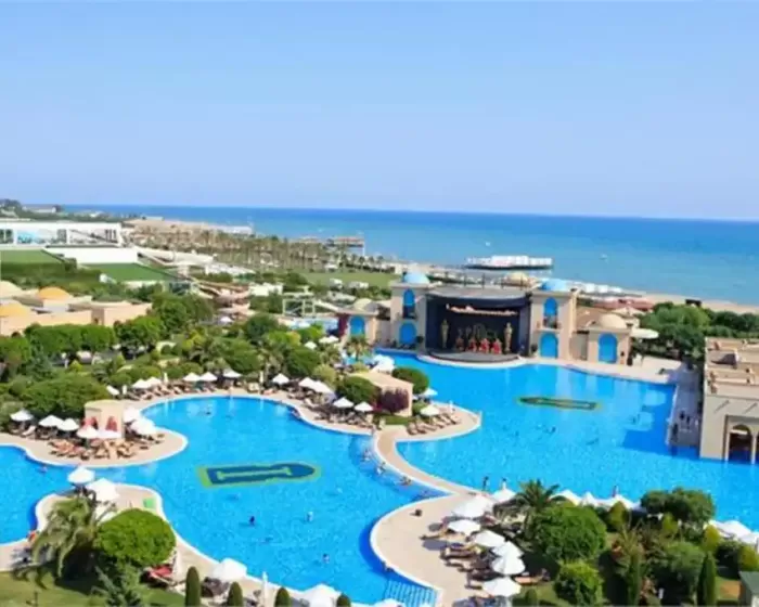 recepcija, glavni restoran, 5 a la carte restorana (italijanski, azijski, turski, riblji, roštilj - obavezna rezervacija, plaćaju se), dijetetski meni, 5 barova (jedan od njih radi 24h), 3 spoljašnja bazena, unutrašnji bazen, 5 vodenih tobogana, SPA centar, novinarnica, menjačnica, bežični internet (kod recepcije besplatan), sala za konferencije (kapacitet 1300 mesta), 6 salona za prijeme kapaciteta 10-50 osoba, tursko kupatilo, sauna, parno kupatilo, jacuzzi, teretana, aerobik, akvabik, odbojka na plaži, košarka, stoni tenis, pikado, animacioni program, diskoteka, 4 teniska terena, dečiji meni, 2 dečijia bazena, 2 dečija vodena tobogana, unutrašnji dečiji bazen ,dečije animacije, dečije igralište, mini klub (od 4 do 11.99 god), junior klub (od 13 do 15.99 god); uz doplatu: room service, masaža, kuglanje, bilijar, video igre, motorni sportovi na vodi, najam teniskih rekvizita i osvetljenje terena, usluge pranja i hemijskog čišćenja veša, usluge doktora i dadilje