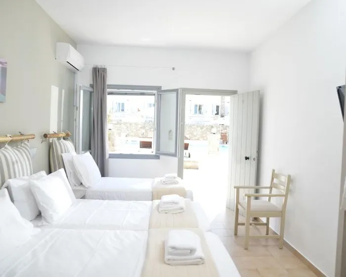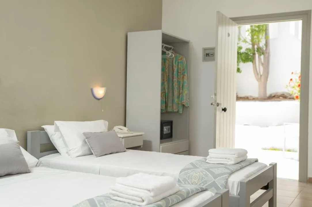 Klima uređaj i centralno grejanje osiguravaju da sobe održavaju ugodnu temperaturu. Većina jedinica uključuje balkon sa pogledom na more, gde gosti mogu opuštati se. Sobe imaju bračni krevet ili sofu na razvlačenje. Dodatni kreveti mogu biti zatraženi. Gosti će takođe pronaći mini frižider među standardnim sadržajima. Direktni telefonski poziv, TV i WiFi (bez dodatne naknade) pružaju sve neophodno za udoban odmor. Fen za kosu je obezbeđen u kupatilima. Porodične sobe su dostupne za roditelje sa decom.
