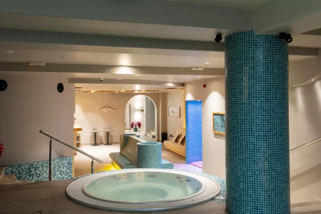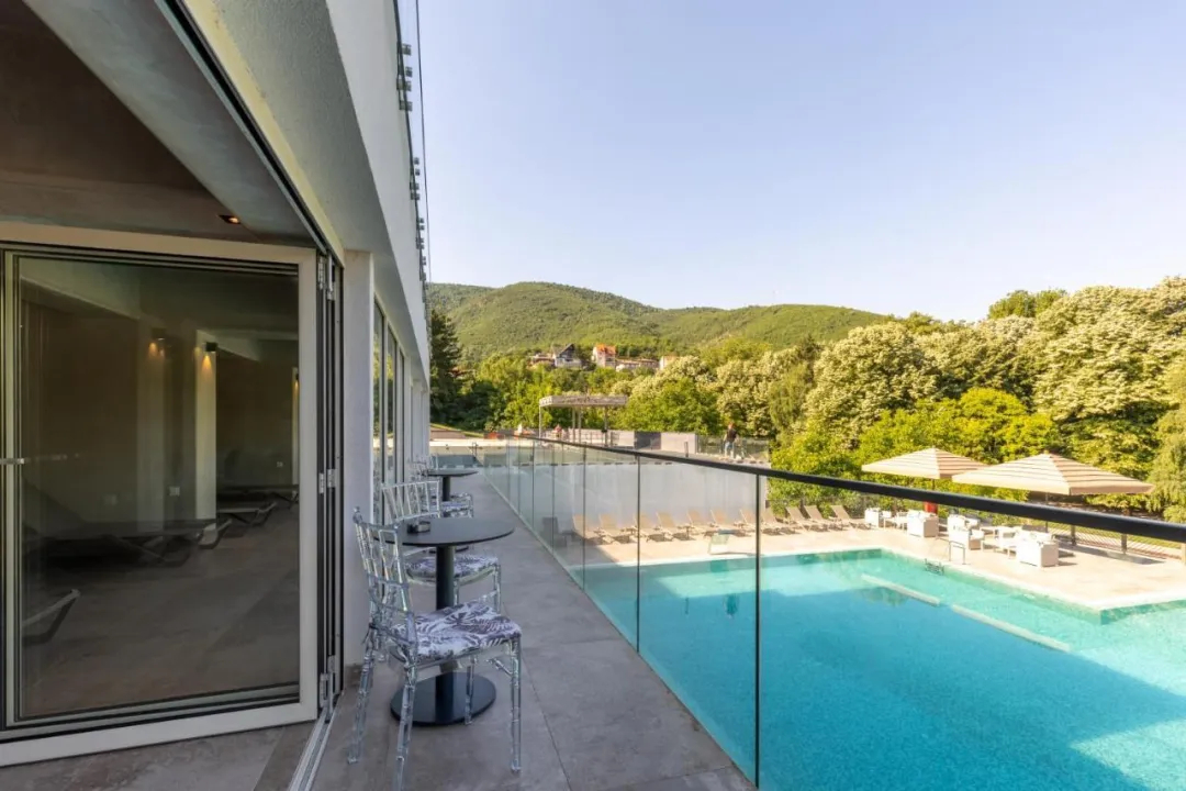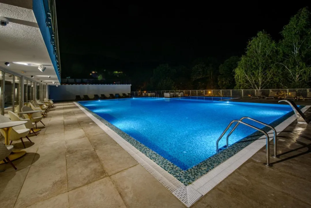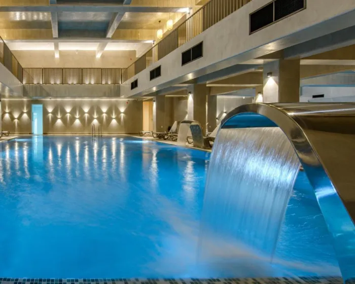 Postoje unutrašnji i spoljni bazeni, kao i dečiji deo za plivanje. Dostupna je terasa sa ležaljkama i suncobranima. Topla kada u bazenskom delu obećava čistu relaksaciju. Postoji mnogo načina za opuštanje ili aktivan boravak u hotelu, uključujući teretanu, spa centar, saunu, hamam, tretmane masaže i planinarenje. Deca su dobro zbrinuta u dečijem klubu.