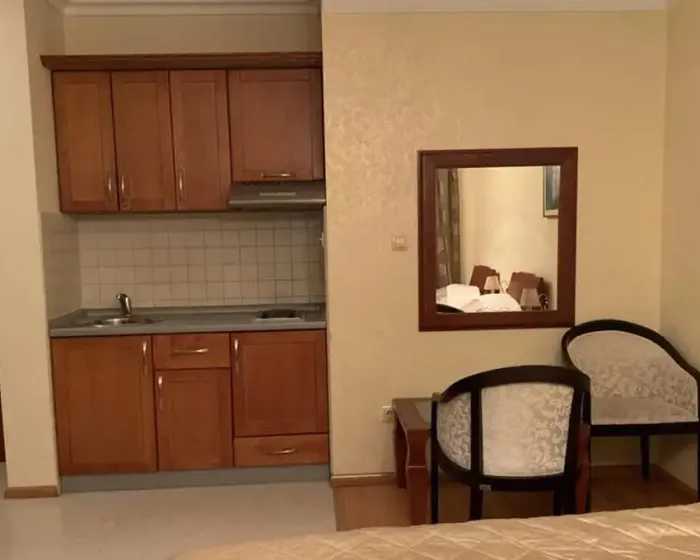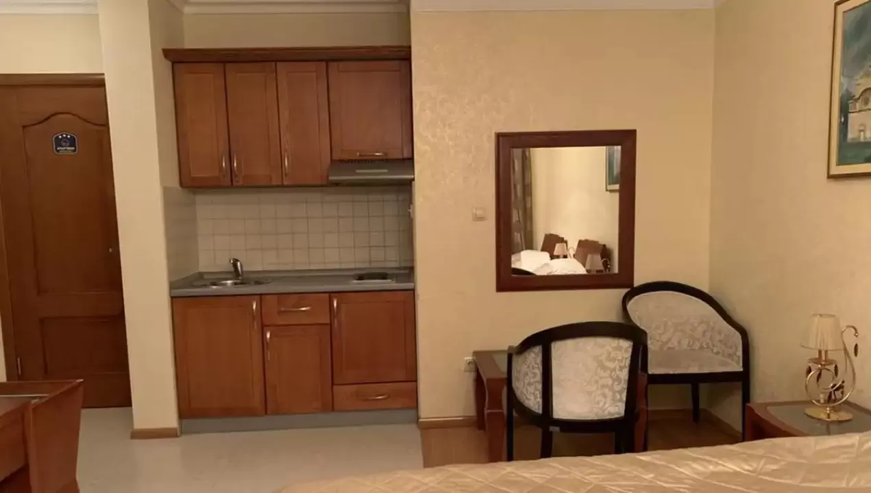 kupatilo sa tušem, čajna kuhinja,frižider, klima-uredjaj, SAT TV, telefon, balkon sa garniturom za sedenje
