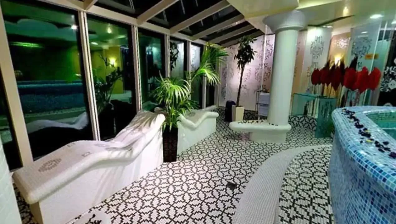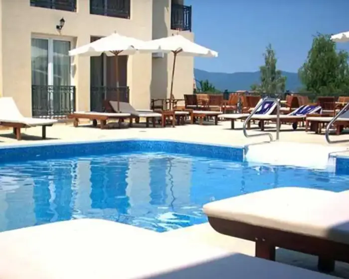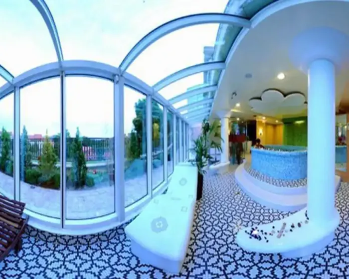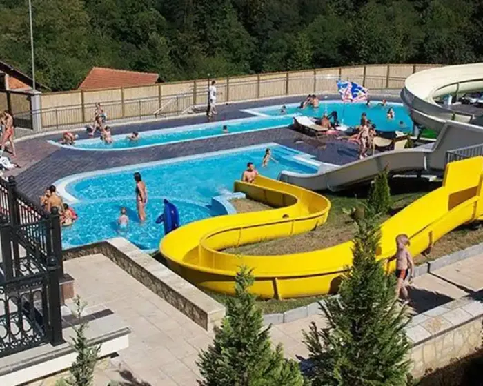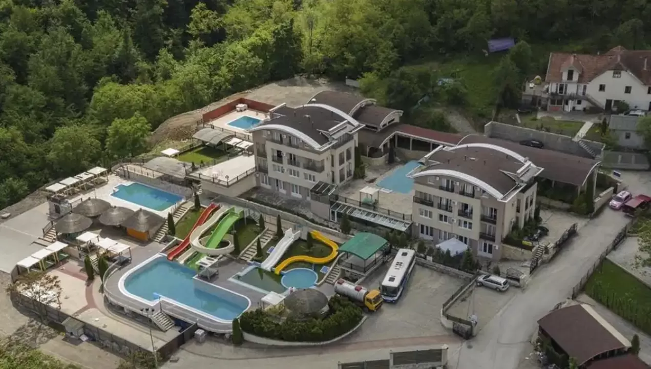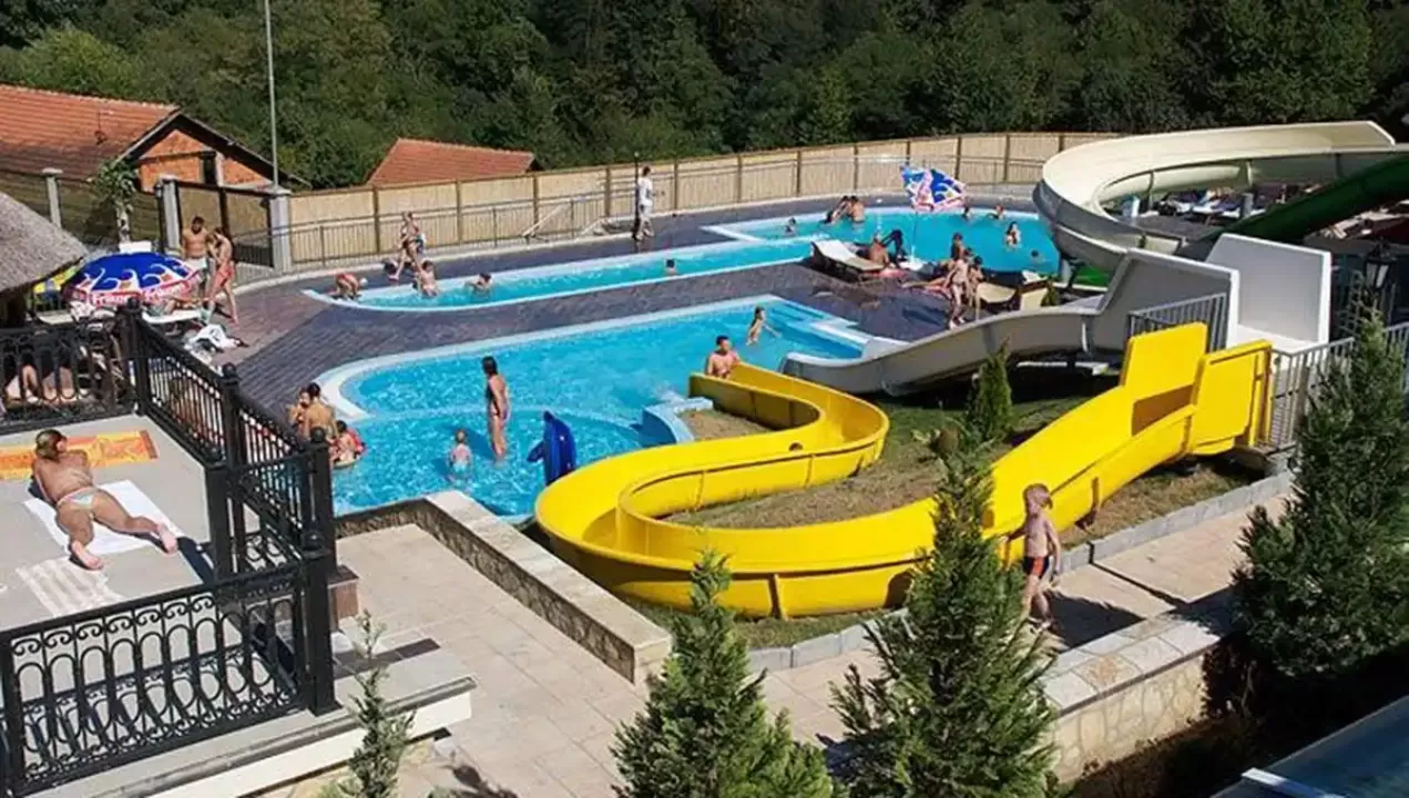 recepcija, bar pored bazena, dva bazena za decu i odrasle, aqua park sa dodatna dva bazena i ukupno šest tobogana (za decu i odrasle), zona odmora sa ležaljkama i suncobranima, spa centar sa turskim kupatilom, velikim whirpool-om za maksimalno osam osoba, tepidarijumima,saunama, masažnim delom i drugim sadržajima. Kompleks poseduje i obezbedjen parking prostor, dvorište sa sadržajima za decu (ljuljaške, klackalice).