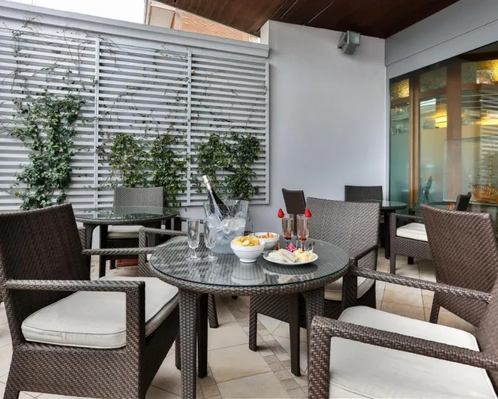 Spoljni kompleks bazena je idealan za vežbanje i opuštanje. Ležaljke i suncobrani su dostupni na terasi, gde gosti mogu uživati u kratkom odmoru ili se opuštati satima. Jacuzzi u okviru bazena pruža čisto opuštanje. Postoji mnogo načina za opuštanje ili aktivnosti u hotelu, uključujući tenis, teretanu, spa centar i saunu.
