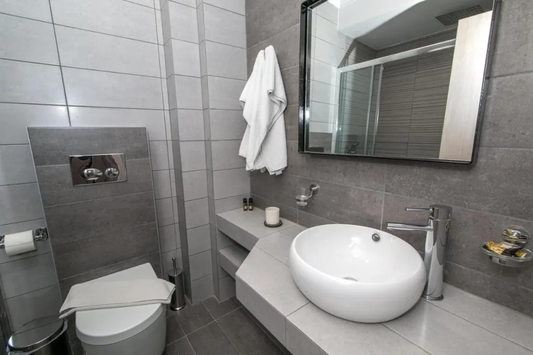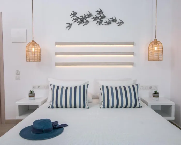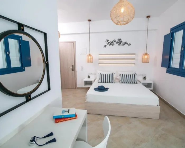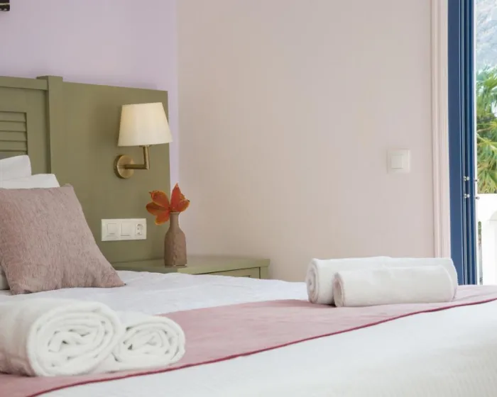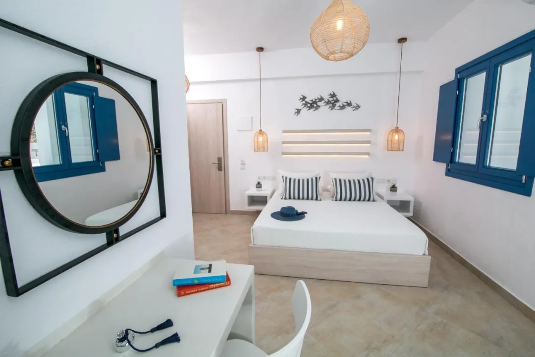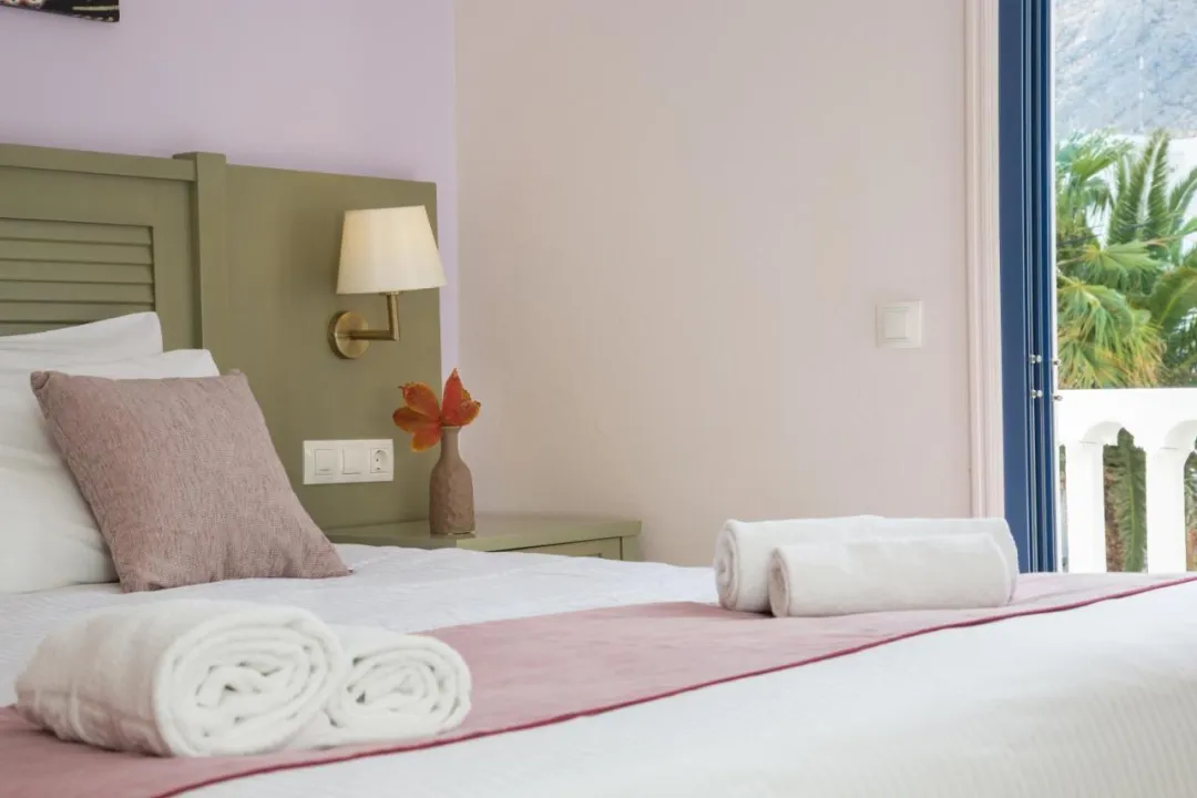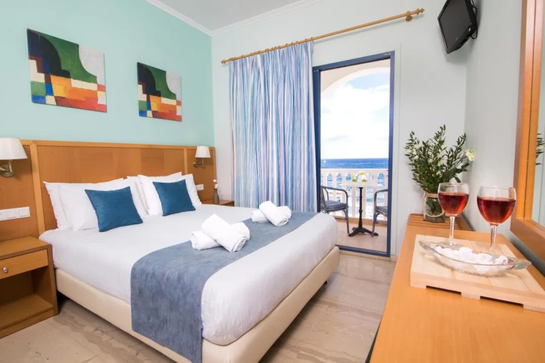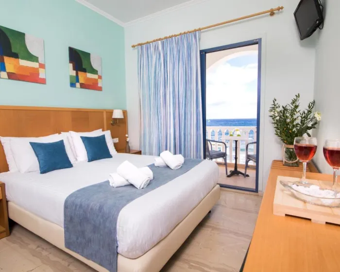 Sobe su opremljene klima uređajem i individualno podešavajućim grejanjem. U većini jedinica, gosti mogu uživati u pogledu na more sa balkona ili terase. Sobe imaju bračni krevet i sofu. Dodatni kreveti mogu se zatražiti. Sef pruža sigurno čuvanje ličnih stvari gostiju. Dodatne mogućnosti uključuju frižider i mini frižider. Direktno biranje telefonom, televizor sa satelitskim/ kablovskim kanalima, radio i WiFi (bez dodatne naplate) omogućavaju optimalnu udobnost. Kupatila su opremljena tušem i kadom, kao i fenom za kosu. Hotel ima 35 soba za nepušače.