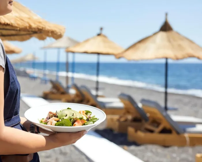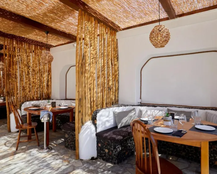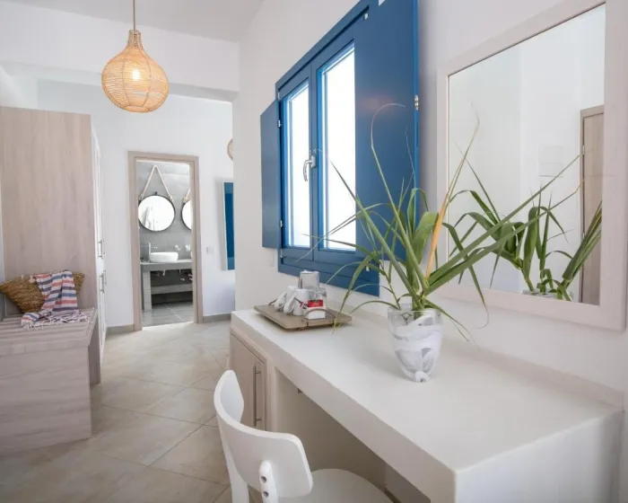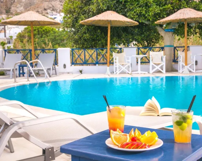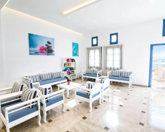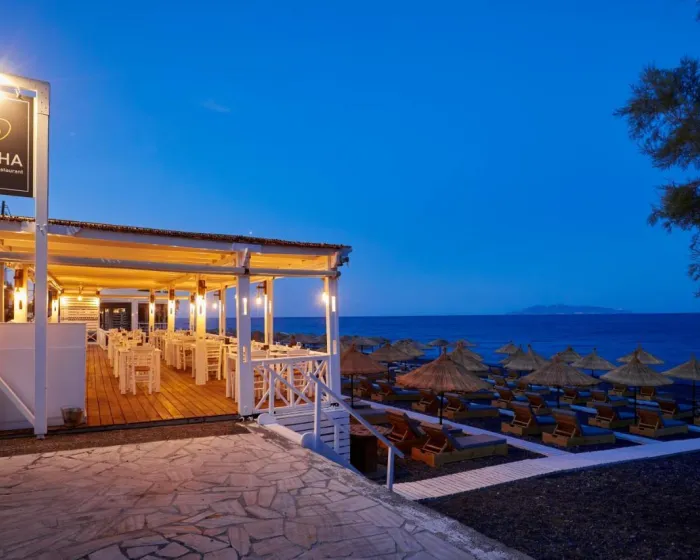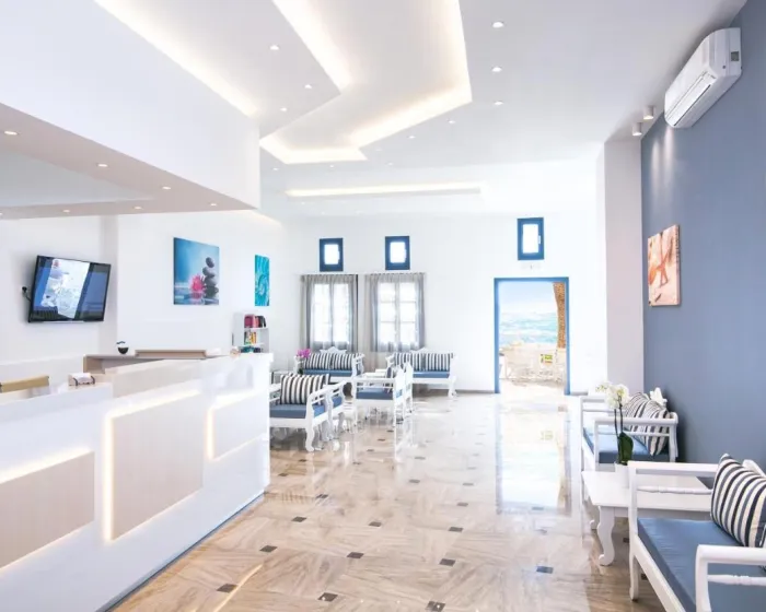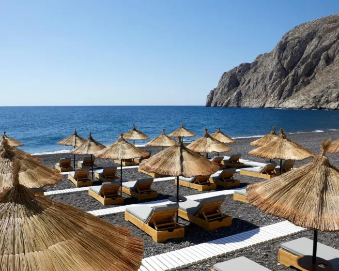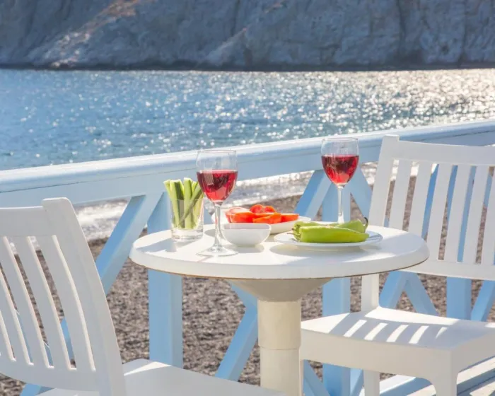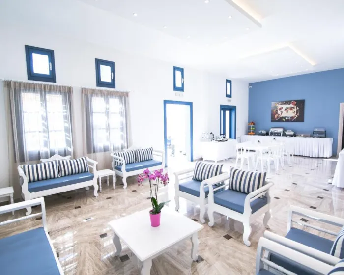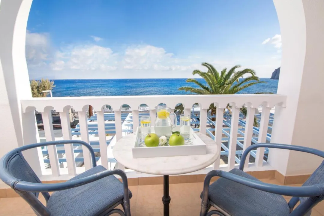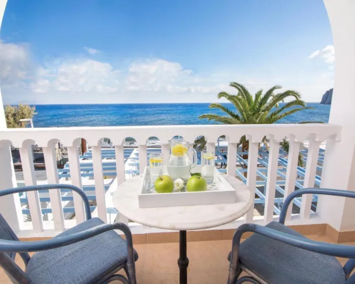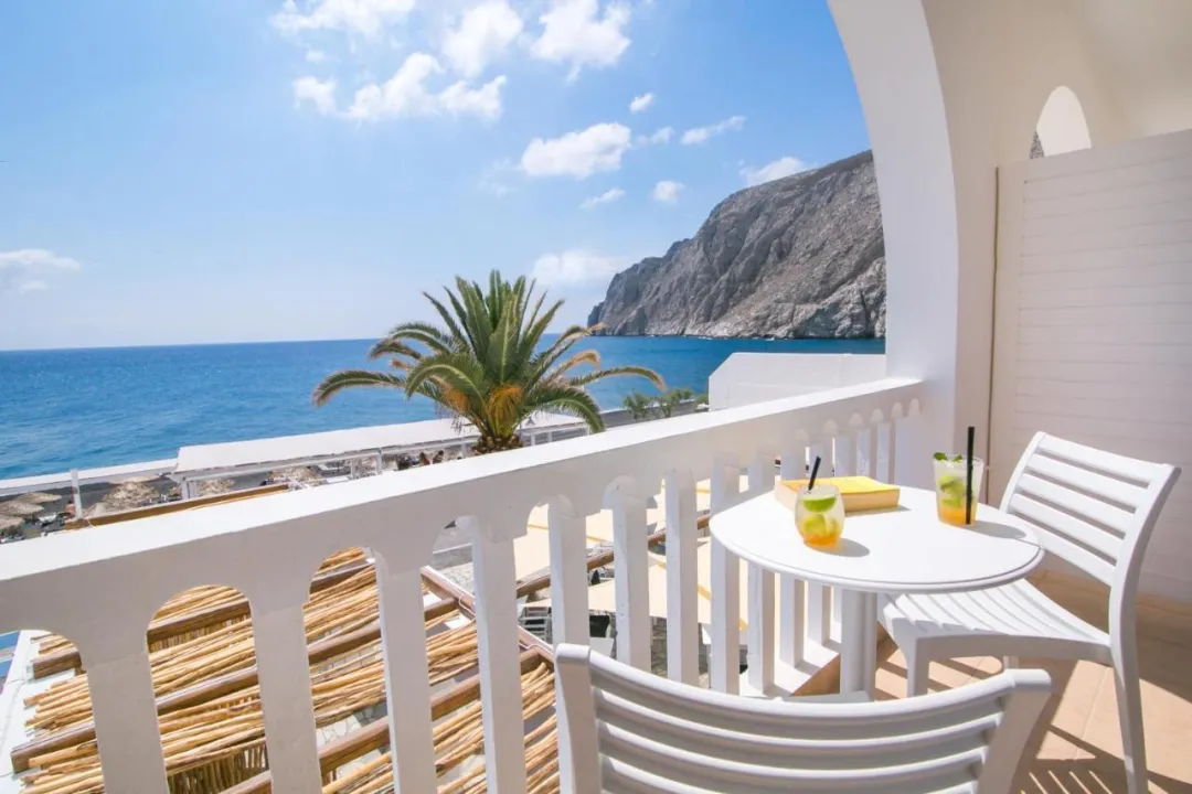 Ovaj hotel se nalazi na plaži Kamari, tik uz šetalište pored plaže, oko 50 metara udaljen od centra grada i 100 metara od autobuske stanice. Nalazi se u turističkoj zoni sa brojnim hotelima, restoranima i prodavnicama svih vrsta. Stari grad Thira je udaljen oko 3 km. Aerodrom Santorini je udaljen otprilike 4 km.