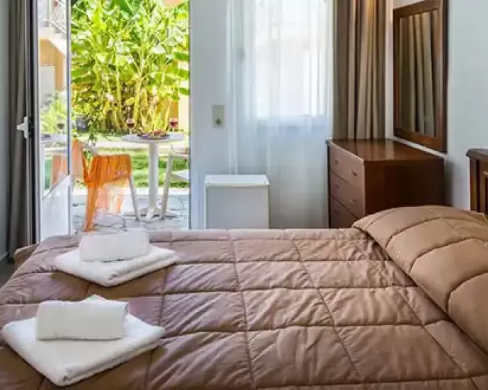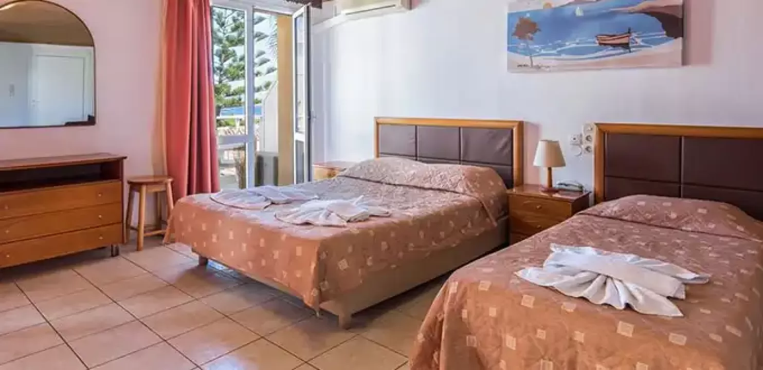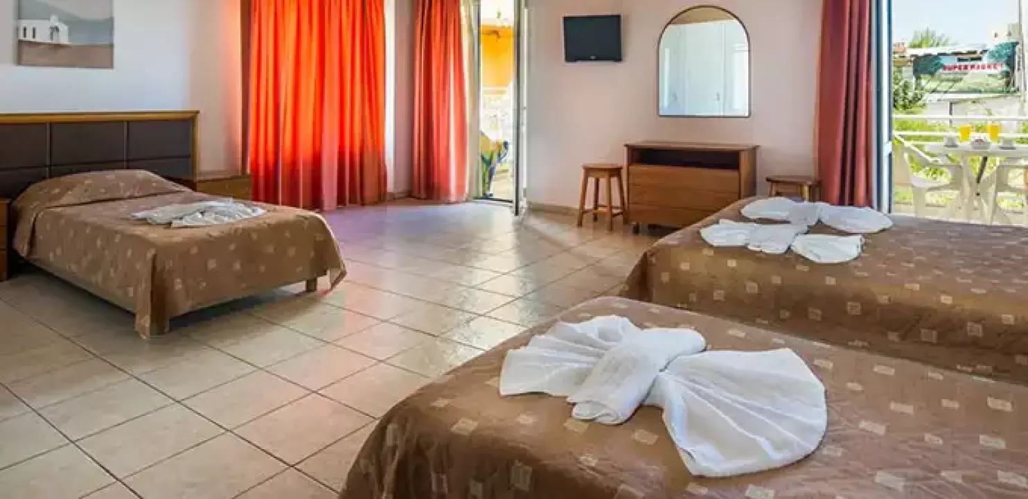 standard sobe SSV označene (*) nisu renovirane.Ukupno 133 sobe: Singles & Double Rooms & Triples (~20 m²), Doubles Renovated GV/SSV (~20 m²), Triples Renovated GV(~25 m²), Family Rooms Renovated (~30 m²).U sobama: klima uredjaj, SAT TV, mini frižider, telefon, tuš, balkon/terasa.Single (~20 m²) - francuski ležaj.Double Room (~20 m²) - francuski ležaj.Triple (~20 m²) - francuski ležaj i odvojeni ležaj.Double Renovated GV/SV (~20 m²) - francuski ležaj.Triple Renovated GV (~25 m²) - francuski ležaj i odvojeni ležaj.Family Room Renovated (~30 m²) - francuski ležaj i 2 odvojena ležaja ili kreveti na sprat (BunkBed).Tip dodatnog ležaja - sofa/fotelja/krevet na rasklapanje.