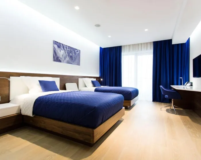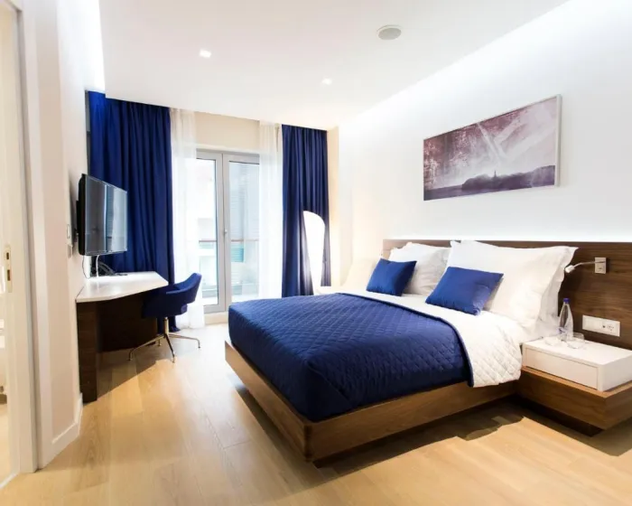Sobe su opremljene klima uređajem i centralnim grejanjem. U većini jedinica, gosti mogu uživati u pogledu na more sa balkona ili terase. Sobe imaju bračni krevet i sofu. Dodatni kreveti mogu biti zatraženi. Sef, minibar i radni sto su takođe dostupni. Telefon, TV i WiFi (bez dodatne naplate) osiguravaju optimalnu udobnost. Papuče su uključene. Fen za kosu i bade mantili su obezbeđeni u kupatilima, koja uključuju tuš kabinu. Sobe prilagođene za osobe sa invaliditetom mogu biti rezervisane. Hotel ima porodične sobe i sobe za nepušače.