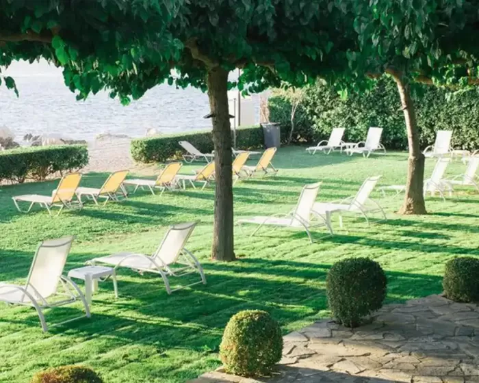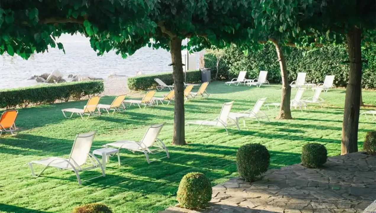 Udobne ležaljke su dostupne na terasi. Koordinatori aktivnosti organizuju zabavni program za odrasle i decu na uređenoj plaži hotela.