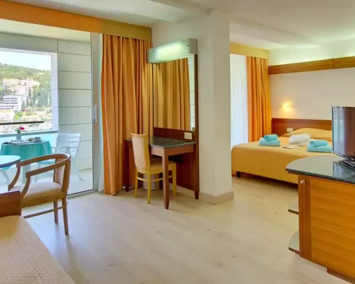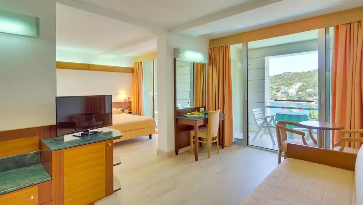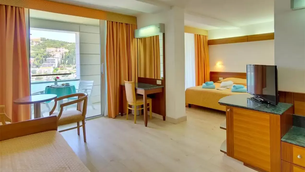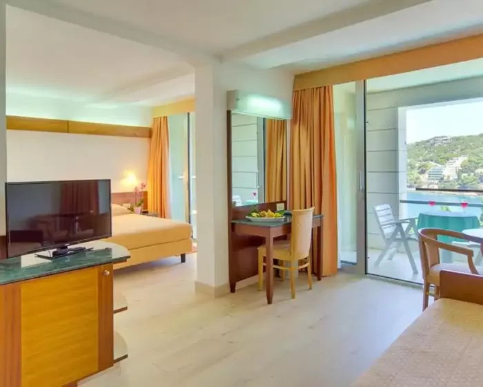 Ukupno soba: Standard soba (Dvokrevetne sobe, ~22 m²), sobe koje nemaju pogled more nemaju ni balkone.U sobama: klima, televizor, mini frižider, tuš, fen (na upit, na recepciji), balkon.