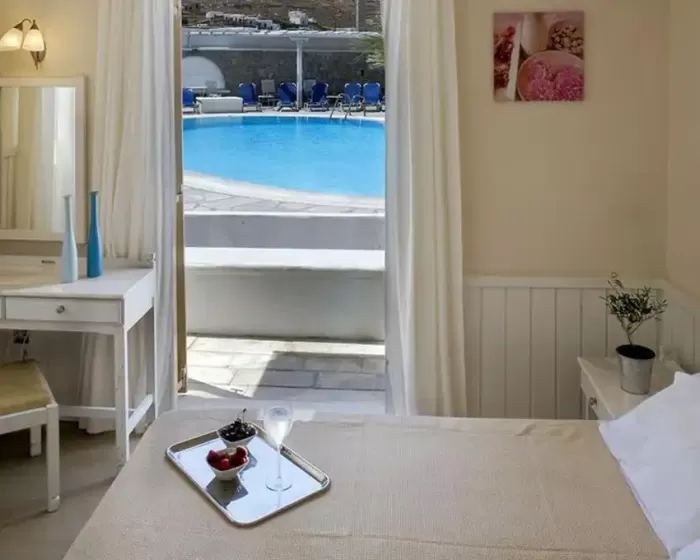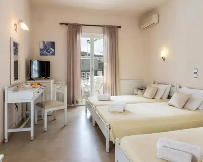 Hotel Vanilla Ornos Beach Mikonos je manji hotel srednje kategorizacije, kompletno renoviran 2008 godine, od Ornos plaže udaljen 400 metara. Na putu do plaže se nalaze osnovni turistički sadržaji, a na samo 50 metara od hotela je stanica javnog prevoza, koji vrlo jednostavno povezuje sve ostrvske plaže.