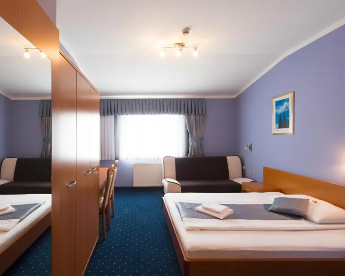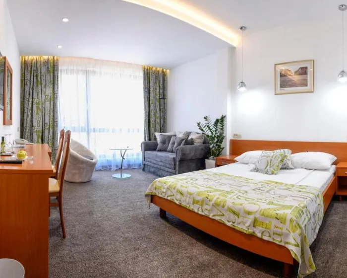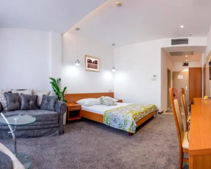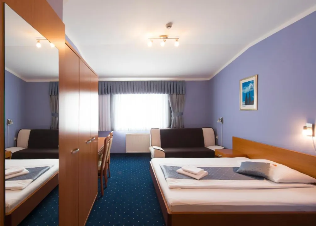 Centralno grejanje obezbeđuje da sobe održavaju udobnu temperaturu. Sobe imaju bračni krevet i kauč na razvlačenje. Sadržaji uključuju mini frižider i WiFi (bez dodatne naplate). Hotel ima sobe za nepušače.