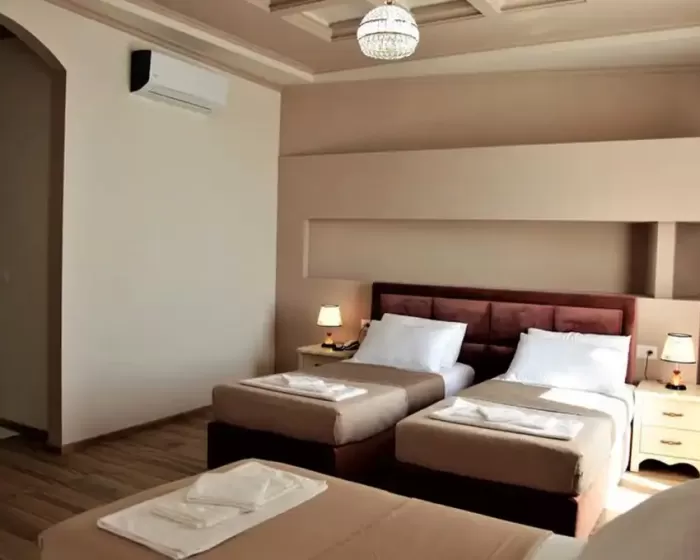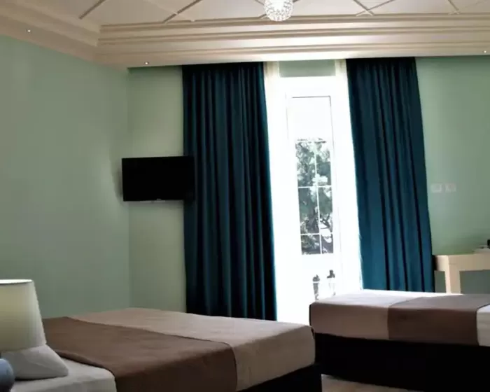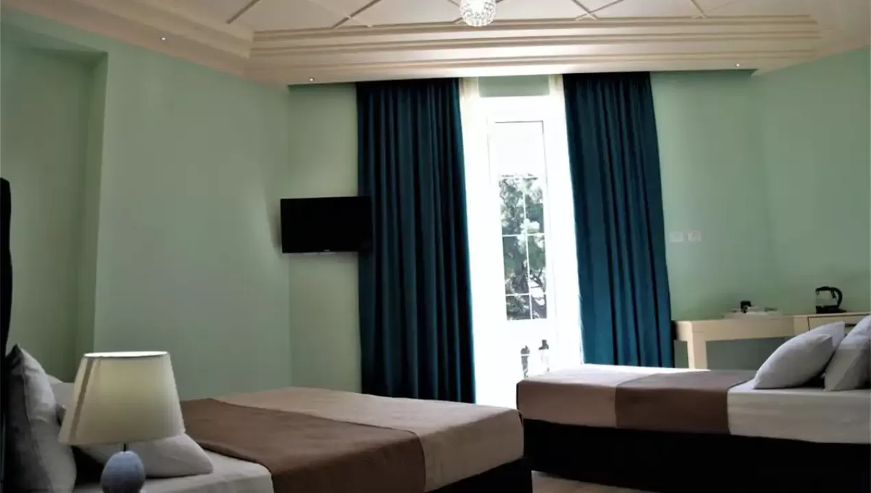 Sve sobe sadrže kupatilo, tv, klima-uredjaj, balkon sa garniturom za sedenje.