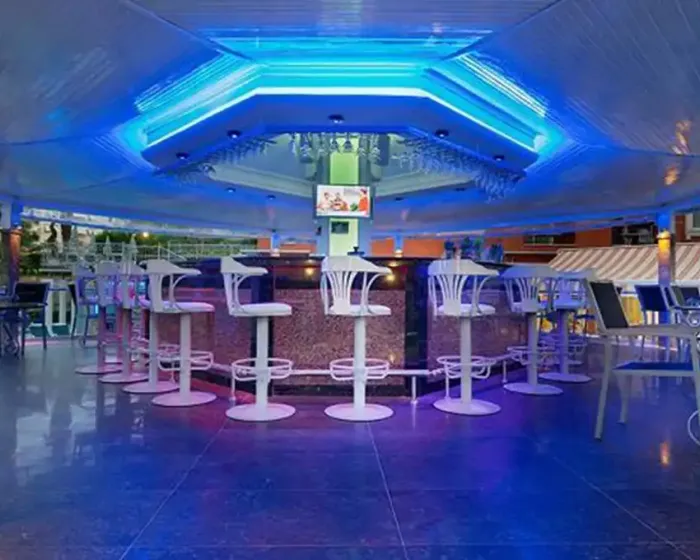 Glavni restoran na bazi otvorenog bufea, izbor između više vrsta jela - samoposluživanje (švedski sto), bar pored bazena, snack bar. Posebno se plaća prema pravilima hotela: lekar, usluga pranja veša, telefon, fax, internet rent-a-car, šoping. Bežični internet je besplatan u lobiju.Otvoreni bazeni za decu i odrasle, tobogan. Posebno se plaća prema pravilima hotela: sportovi na vodi na plaži.