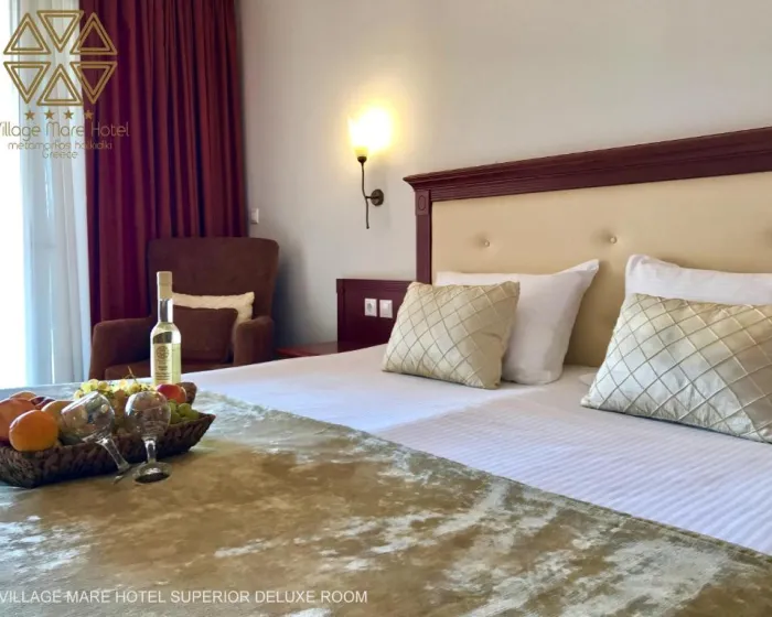 Village Mare 4* Metamorfozis je hotel koji se nalazi na ulasku u popularno letovališta Sitonije, Metamorfozisa, gde je smešten nedaleko od prelepe peščane plaže. Centar vazdušne banje, gde se nalaze svi potrebni sadržaji, se nalazi na oko 800 metara udaljenosti od ovog hotela, povezani uređenim šetalištem uz more. Village Mare se sastoji iz glavne zgrade, gde su centar za animaciju i restoran, i osam depadans bungalov zgrada, predviđenih za smeštaj gostiju. Village Mare je vrlo tražen porodični hotel kod domaćih turista tokom poslednjih godina, ponajviše zbog pristupačne cene boravka na all inclusive usluzi, ali i zbog mogućnosti smeštaja petočlanih porodica.