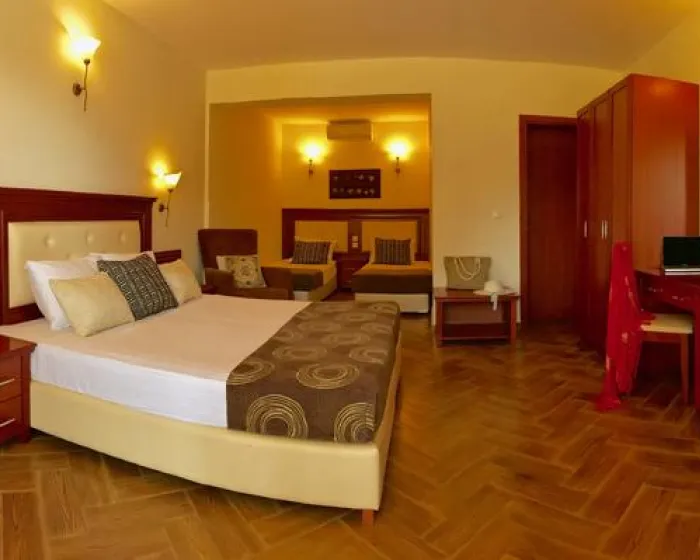 Family soba kreveti na sprat (bbeds): nalazi se na spratu novijeg krila hotela, oko 21m² sa bračnim ležajem i krevetima na sprat za decu.