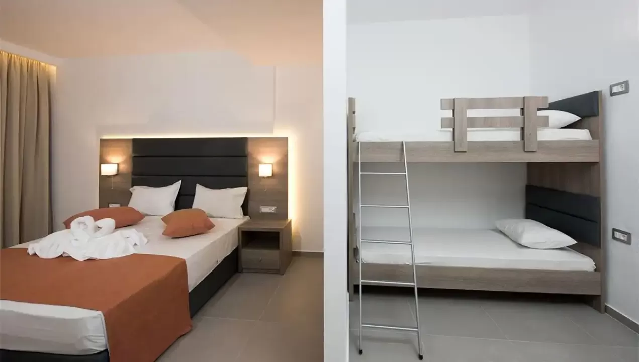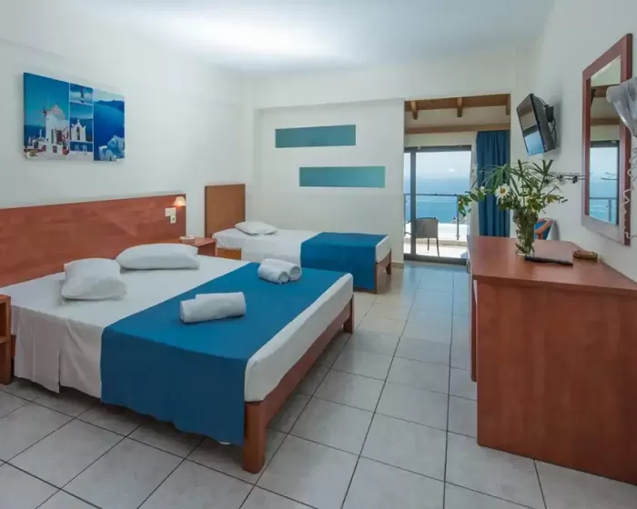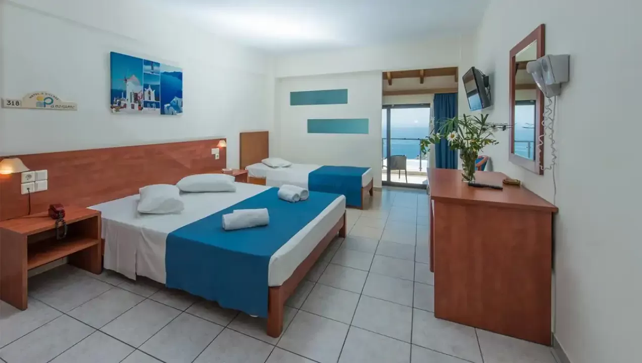 Klimatizacija i centralno grejanje osiguravaju da sobe održavaju ugodne temperature. Gosti mogu uživati u pogledu na more sa balkona ili terase. Za mlađe goste mogu se zatražiti dečiji kreveti i pomoćni ležajevi. Na raspolaganju su i sef i mini bar. Dodatne karakteristike uključuju frižider i stanicu za čaj/kafu. Ostale karakteristike uključuju telefon sa direktnim biranjem, TV, radio i ViFi. Fen za kosu i telefon su dostupni u kupatilima, koja su opremljena tušem i kadom. Porodične sobe su dostupne roditeljima sa decom.