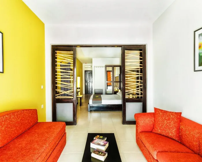 Family soba sa dve spavaće sobom pogled bašta Luksuzne sobe sa pogledom na Azurno more. Soba se sastoji od spavaće i dnevne sobe odvojene kliznim vratima
