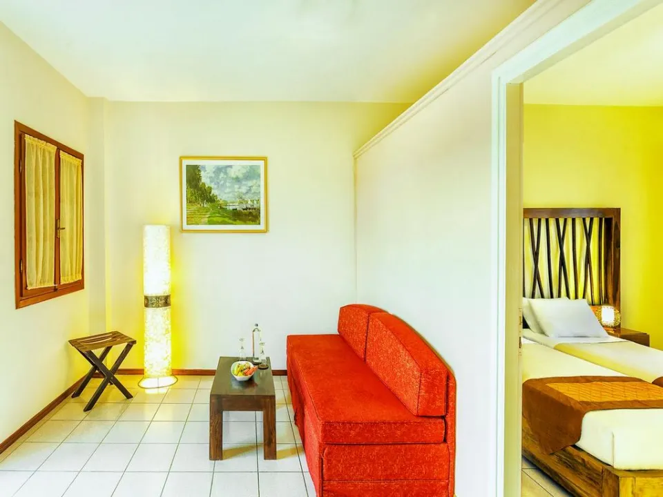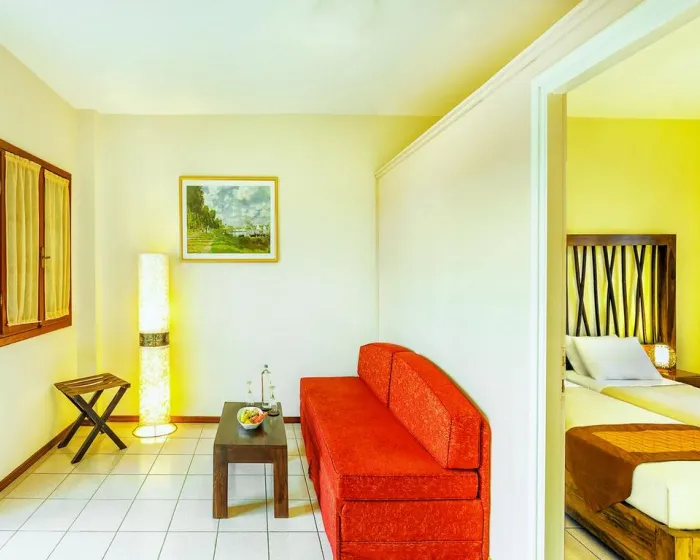 Family soba sa jednom spavaćom sobom pogled bašta 60 m², pogled na vrt. Sastoji se od jedne spavaće sobe sa francuskim ili dva odvojena ležaja i dnevne sobe sa sofom. Predvidjene za 2-5 osoba.
