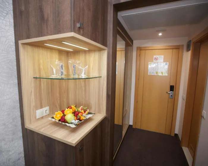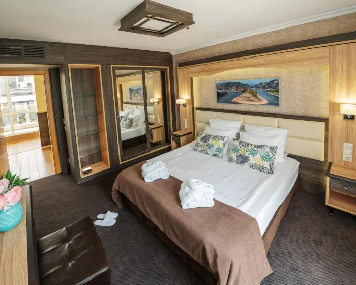 Sobe su opremljene klima uređajem. Sobe imaju bračni krevet ili sofu. Takođe su dostupni sef i mini bar. Direktni telefonski poziv, satelitska televizija i WiFi (bez dodatne naplate) su takođe obezbeđeni. Telefon je dostupan u kupatilima. Porodične sobe su dostupne za roditelje sa decom.