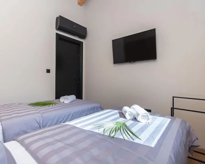 Udobno se smestite u ovoj kući za odmor sa klima uređajem, koja ima kuhinju sa frižiderom i rernom. Pogodnosti uključuju sef i mikrotalasnu.
