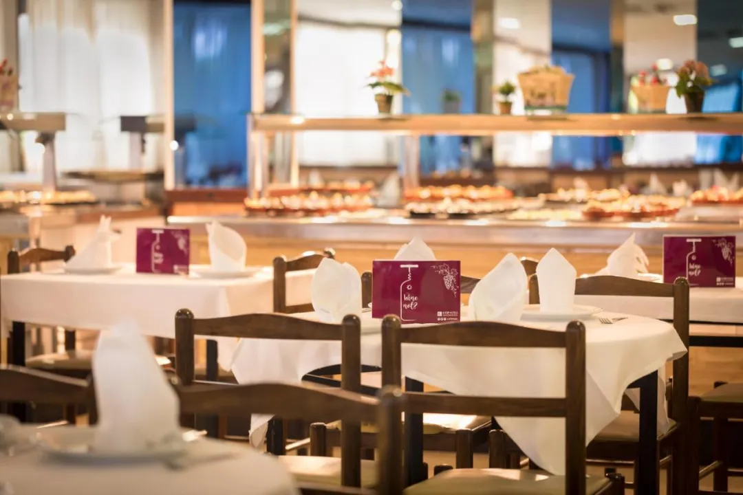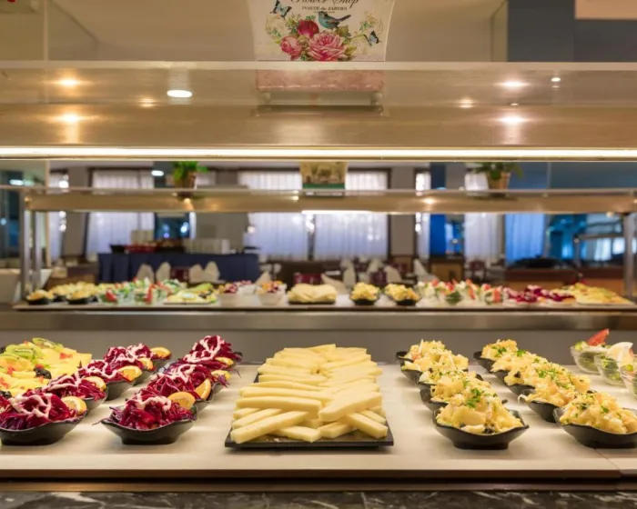 Prostor za jelo uključuje restoran sa švedskim stolom i bar. Opcije za ishranu uključuju krevet i doručak, polupansion, pun pansion, all-inclusive i all-inclusive specijal. Dijetetski obroci, obroci bez glutena, vegetarijanska jela, dečiji obroci i obroci bez laktoze mogu biti pripremljeni na zahtev. Za male goste, bebi hrana je dostupna na zahtev. Meni sa pićima uključuje raznovrsne alkoholna i bezalkoholna pića, kao i internacionalne brendove.