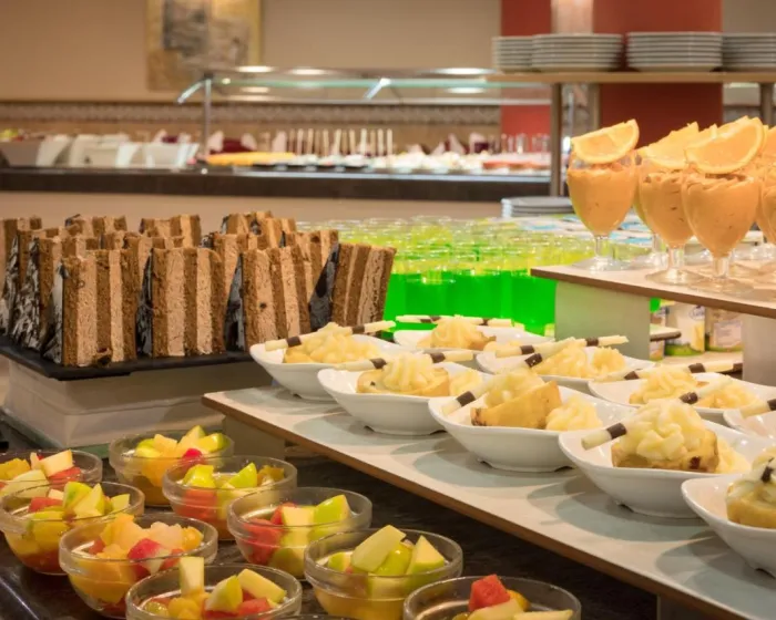 Gosti su počašćeni kulinarskim užicima u restoranu sa švedskim stolom. Osvežavajuća pića u plažnom baru su savršen način da uživate u toplom vremenu. Opcije ishrane uključuju krevet i doručak, polupansion, pun pansion, sve uključeno i specijalno sve uključeno. Dijetetski obroci, obroci bez glutena, vegetarijanska jela, dečiji obroci i obroci bez laktoze mogu biti pripremljeni na zahtev. Bebi hrana (na zahtev) obezbeđuje dobrobit najmlađih. Meni pića uključuje raznovrsne alkoholna i bezalkoholna pića, kao i internacionalne brendove.