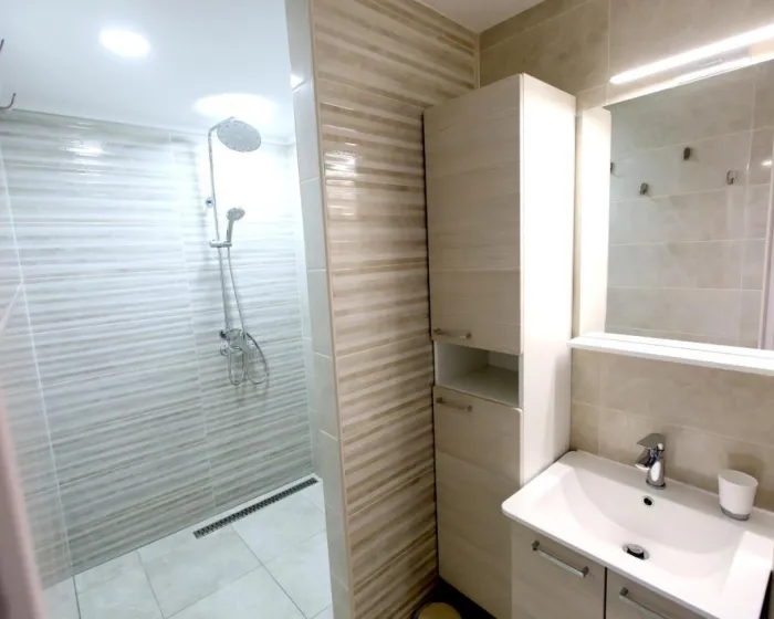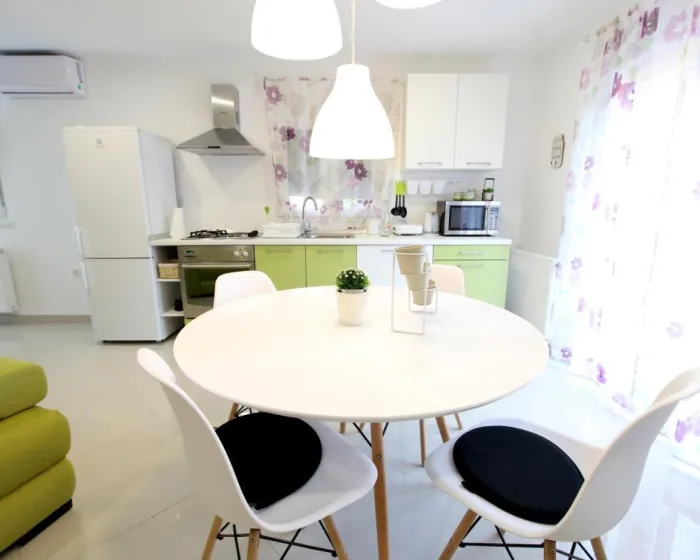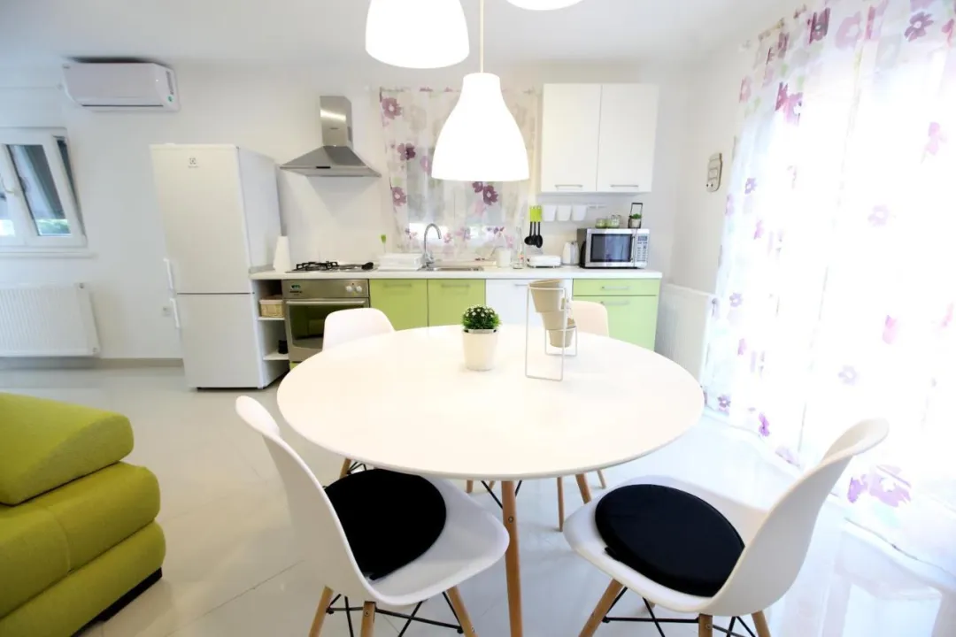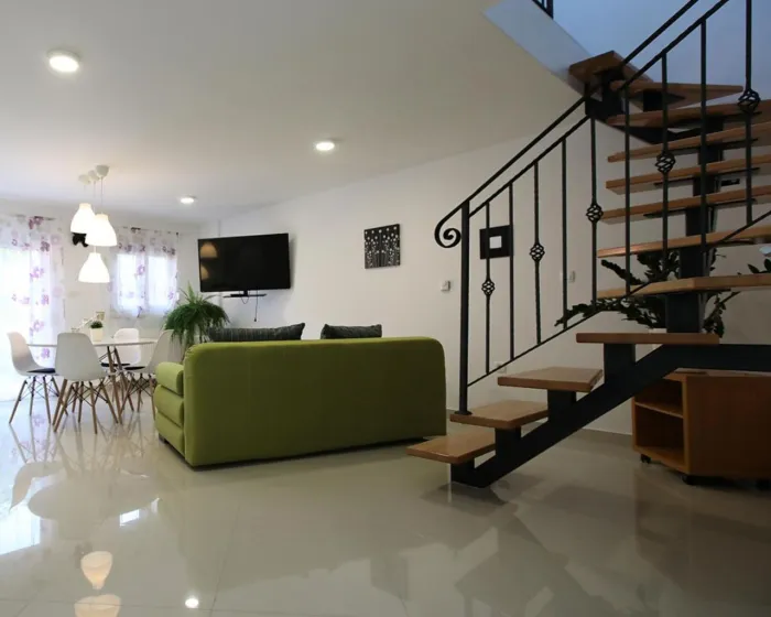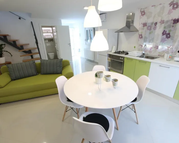 Prostrani apartman ima 2 spavaće sobe, 2 kupatila, posteljinu, peškire, flat-screen TV sa satelitskim kanalima, trpezariju, potpuno opremljenu kuhinju, i terasu sa pogledom na baštu. Klimatizovana jedinica u objektu ima tuš kabina i garderober. Radi veće privatnosti, smeštaj ima zaseban ulaz i zvučnu izolaciju.