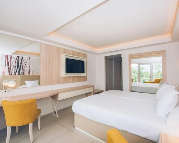 Klima uređaj i centralno grejanje obezbeđuju da sobe održavaju udobne temperature. Gosti kompleksa dobijaju poklon dobrodošlice prilikom dolaska. Većina jedinica uključuje balkon sa pogledom na more, gde gosti mogu da se opuste i uživaju. Sobe sadrže bračni krevet. Kreveti za decu mogu biti zatraženi za mlađe goste. Takođe postoje sef i minibar uz dodatnu naknadu. Opremljene telefonom, flat-screen televizorom sa satelitskim kanalima i WiFi-em (bez dodatnih troškova), sobe pružaju mnoge načine za goste da ostanu povezani i zabavljaju se. Usluge odlaska gostiju pružaju dodatnu udobnost tokom večernjih sati. Izbor jastuka osigurava udoban boravak. Kupatila uključuju fen za kosu i opremljena su tušem i kadom.