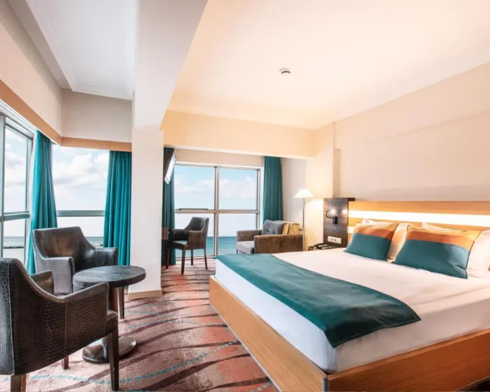 Klima uređaj i centralno grejanje osiguravaju da sobe imaju ugodne temperature. U većini jedinica, gosti mogu uživati u pogledu na more sa balkona ili terase. Sobe imaju bračni krevet i sofu. Dodatni kreveti mogu biti zatraženi. Na raspolaganju su i sef, minibar i radni sto. Telefon, TV i WiFi (bez dodatne naplate) pružaju sve što je potrebno za udoban odmor. Kupatila su opremljena tušem i kadom, kao i fenom za kosu. Hotel ima sobe za pušače.