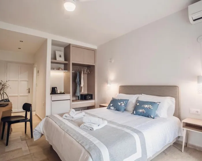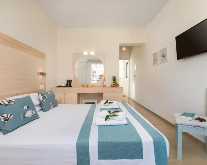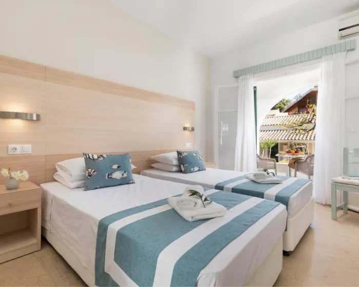 Klima uređaj (uz nadoknadu), podesivo centralno grejanje i ventilator osiguravaju da sobe održavaju prijatne temperature. Gosti mogu uživati u pogledu na vrt sa balkona ili terase. Sobe imaju francuski krevet i kauč na razvlačenje. Dostupne su odvojene spavaće sobe. Dečiji krevetići i dodatni kreveti mogu se zatražiti za mlađe goste. Takođe postoji radni sto i, uz nadoknadu, sef. Mini frižider i aparat za kafu/čaj su standardne karakteristike. Direktno biranje telefona, satelitska televizija, radio i WiFi (bez dodatne naknade) obezbeđuju sve što je potrebno za udoban odmor. Papuče su uključene. Kupatila su opremljena tušem i uključuju fen za kosu.