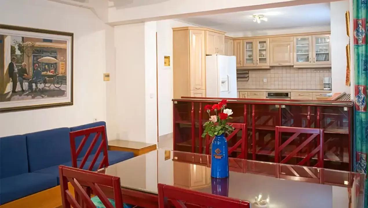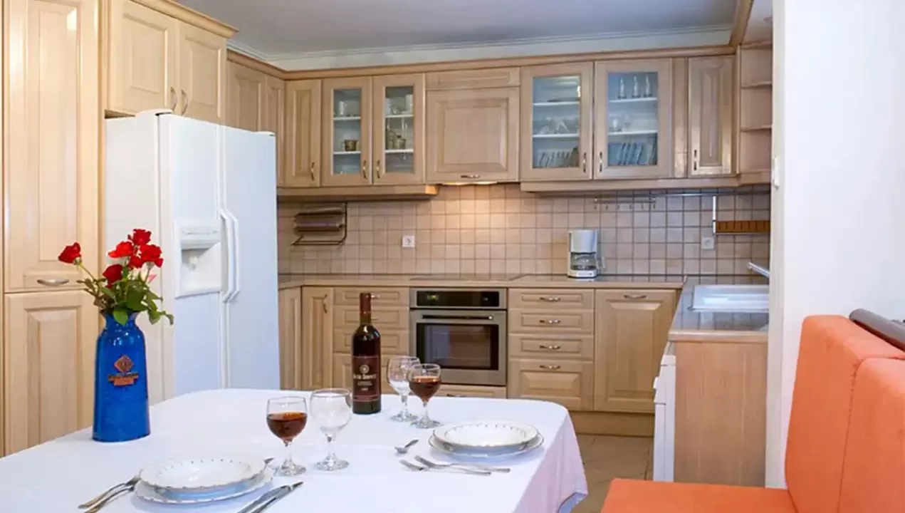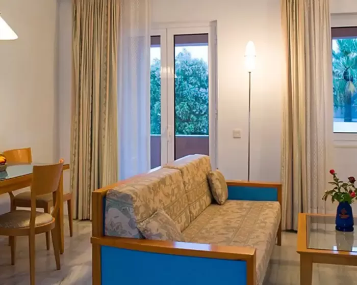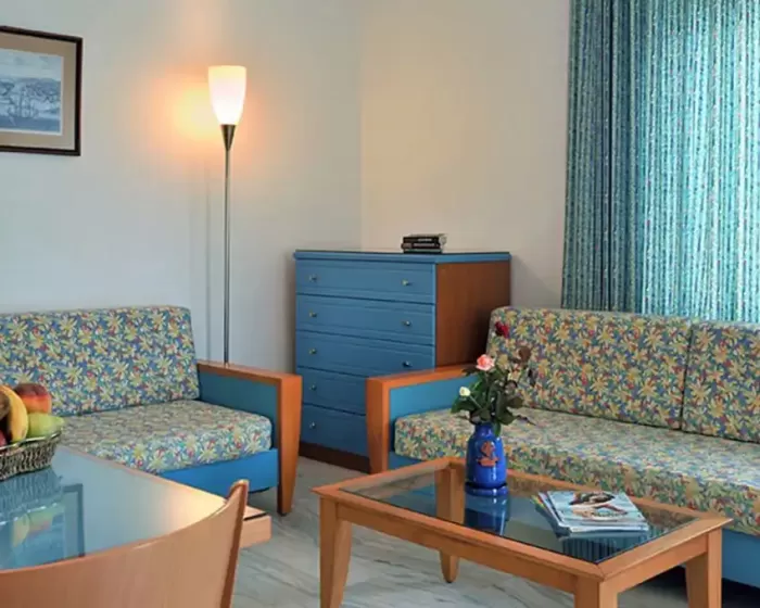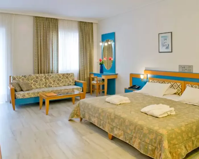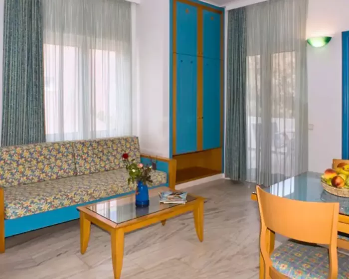 Ukupno 41 soba:  Junior Suites (~40 m²), Maisonettes 1-Bedroom (~55 m²), Suites 1-Bedroom (~45 m²), Suites 2-Bedroom (~68 m²), Mega Suites (~120 m²).U sobama: - kuhinja, klima-uredjaj, SAT TV, telefon, kada/tuš, fen, kozmetičko ogledalo, frižider, sef (uz doplatu na licu mesta), Wi-Fi internet (uz doplatu na licu mesta), balkon/terasa.Junior Suite - jedna soba, 2 odvojena kreveta, kupatilo od mermera.Maisonette - duplex, dnevni boravak i spavaća soba.Suite 1-Bedroom - dnevni boravak i odvojena spavaća soba. Smešten na prvom ili drugom spratu.Suite 2-Bedrooms - dnevni boravak i 2 odvojene spavaće sobe, 2 kupatila.Mega Suite - dnevni boravak i 4 odvojene spavaće sobe, 2 kupatila, jedno sa jacuzzi kadom a drugo sa tušem, mašina za veš, opremljena kuhinja, klima u svakoj sobi.