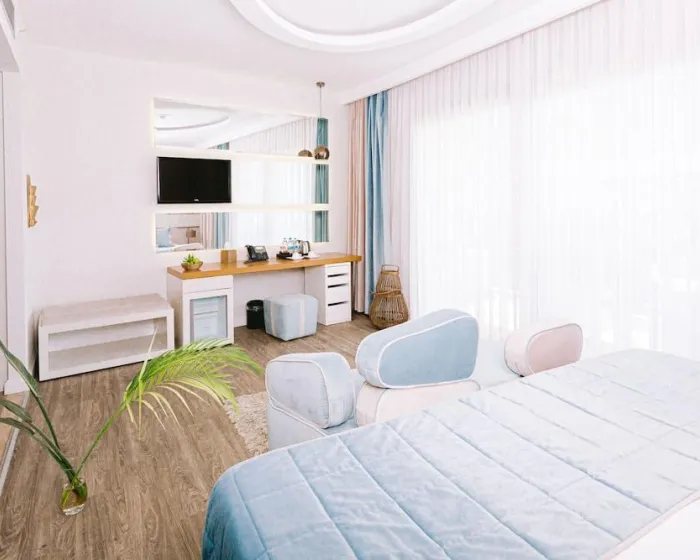Sobe imaju dnevnu sobu, kuhinju i kupatilo. Klima uređaj i individualno podešavanje grejanja obezbeđuju udobne unutrašnje temperature. Većina jedinica uključuje balkon sa pogledom na more, gde gosti mogu opuštati se i uživati. Sve sobe su popločane i imaju bračni krevet, krevet queen size, krevet king size ili sofu. Dodatni kreveti mogu biti zatraženi. Takođe su dostupni sef i minibar. Gosti će takođe naći i frižider među standardnim sadržajima. Pegla za pantalone je obezbeđena radi gostićeve praktičnosti. Dostupni su i direktno biranje telefonom, televizor sa satelitskim/ kablovskim kanalima i WiFi (bez doplate). Kupatila su opremljena tuš kabinom i kadom, kao i fenom za kosu. Gosti mogu rezervisati sobe prilagođene invalidskim kolicima sa prilagođenim kupatilima. Porodične sobe su dostupne za roditelje sa decom.