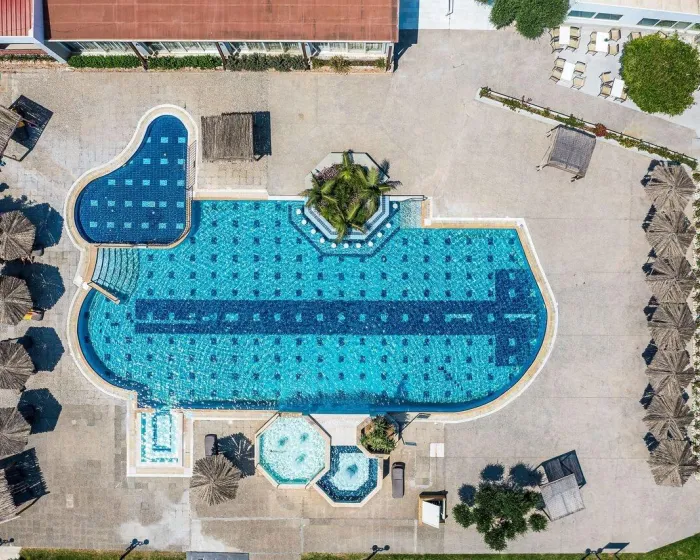 Prostrano područje bazena, koje uključuje 2 spoljašnja bazena, odlično je mesto za opuštanje i osvežavajuće kupanje gostiju. Čak i na hladnim danima, plivanje je uvek opcija u unutrašnjem bazenu. Deca mogu da se kupaju u jednom od 2 dečija bazena. Čisto opuštanje u đakuziju, zabava na toboganu i osvežavajući napici u baru pored bazena - gosti će doživeti koliko bogat i raznovrstan može biti dan proveden u vodi. Ležaljke i suncobrani na sunčanoj terasi stvaraju savršen prostor za opuštanje gostiju. Kompleks nudi različite vodene sportove, uključujući windsurfing, ili uz dodatnu naknadu, kajtsurfing i ronjenje. Širok spektar unutrašnjih sportova se nudi, uključujući teretanu ili, uz doplatu, bilijar, jogu i pilates. Wellness zona sa solarijumom je dostupna gostima. Uz doplatu, nude se i tretmani masaže. Gosti mogu uživati u raznim zabavnim sadržajima i aktivnostima, uključujući zabavni program i živu muziku.