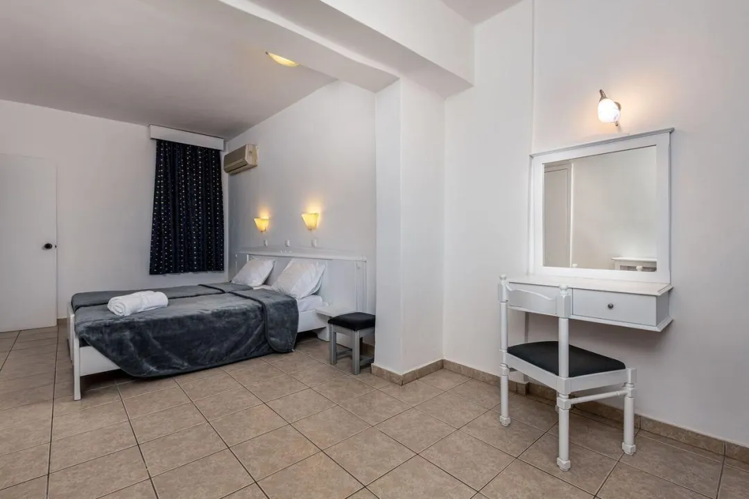 Sobe su opremljene klima uređajem. Gosti mogu opuštati i uživati u pogledu na more sa balkona ili privatne terase nekih soba. Gosti će sigurno imati dobar noćni odmor na bračnom krevetu. Dečiji krevetići mogu biti obezbeđeni bez dodatne naknade na zahtev. Mini bar i, uz doplatu, sef su takođe dostupni. Gosti će takođe naći mini frižider među standardnim sadržajima. Direktno biranje telefona, ravni televizor sa satelitskim kanalima, radio i WiFi (bez dodatne naknade) su takođe obezbeđeni. Kupatila su opskrbljena fenom za kosu i telefonom za svakodnevnu upotrebu. Za dodatni komfor u kupatilima, gostima su ponuđeni kozmetički proizvodi.