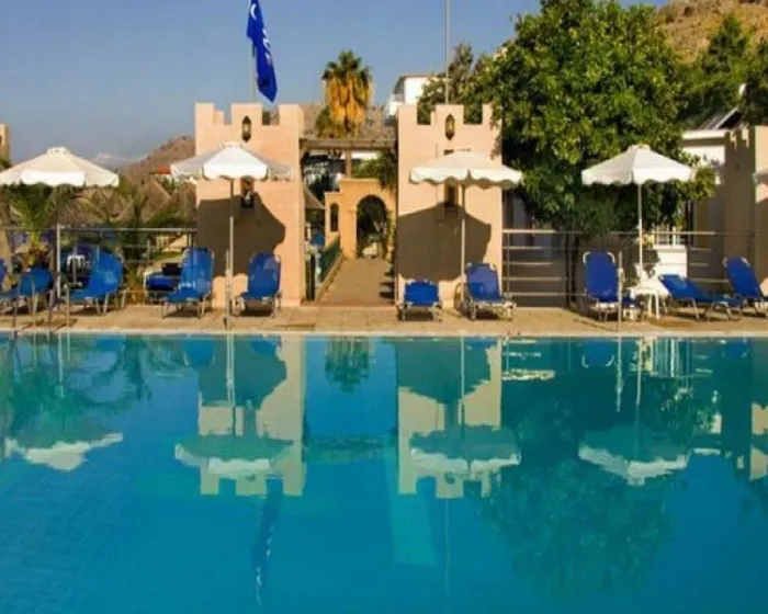 Hotel se nalazi između plaža Pefkos i Lardos, na 5 km od istorijskog grada Lindos i 3 km od Lardosa. Plaža je udaljena samo 20 m! Lokalni autobusi koji prelaze celo ostrvo staju tačno ispred hotela. Moguće je uzeti autobus do grada Rodosa (udaljenog 50 km), sela Lindos, Pefkosa i drugih destinacija. Takođe, hotel je udaljen 55 km od aerodroma.