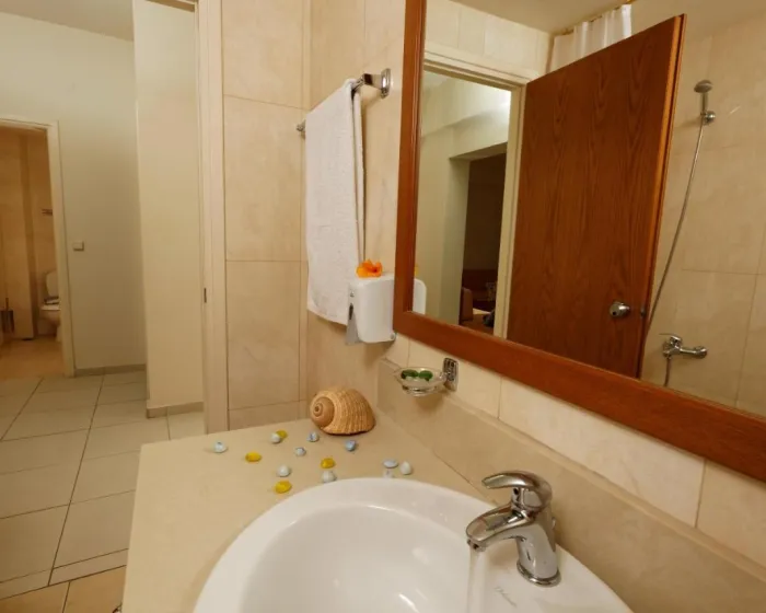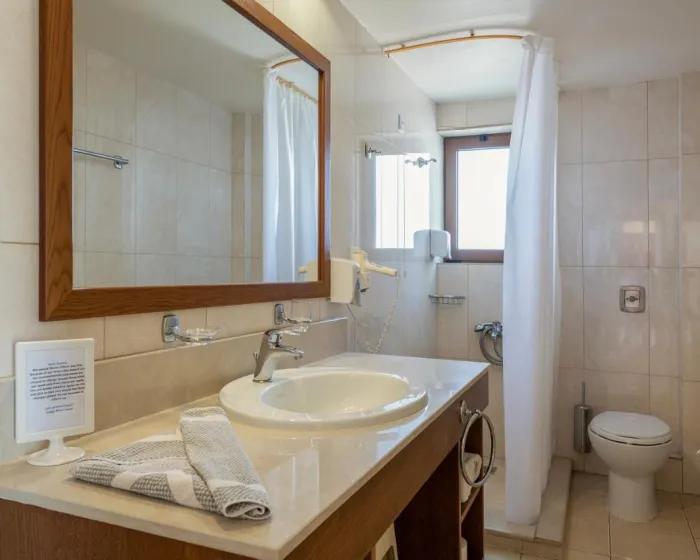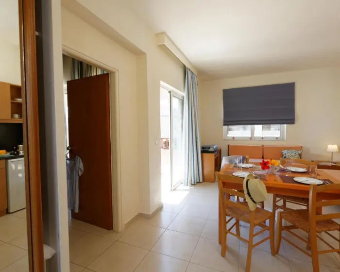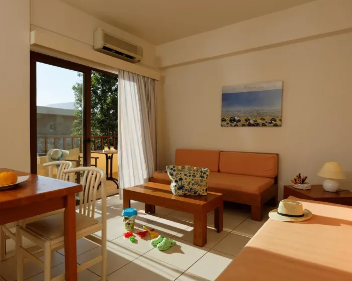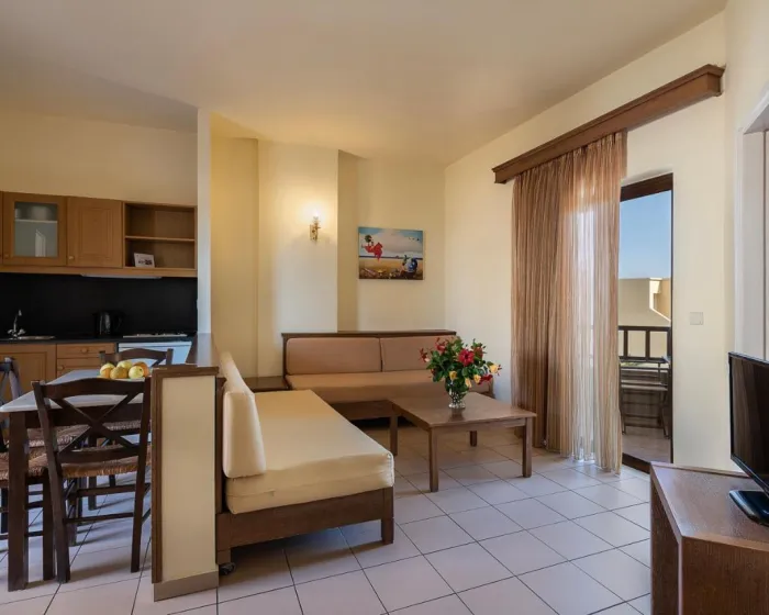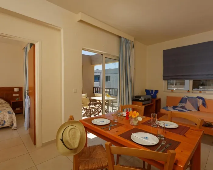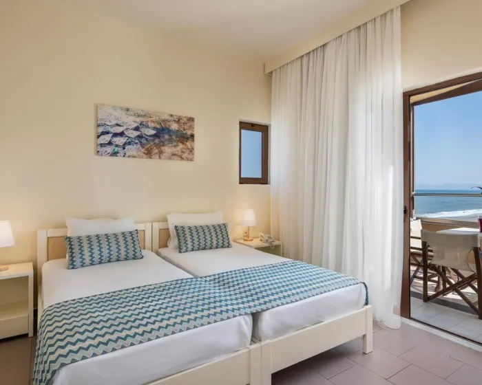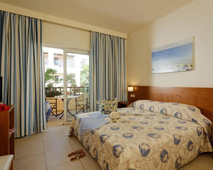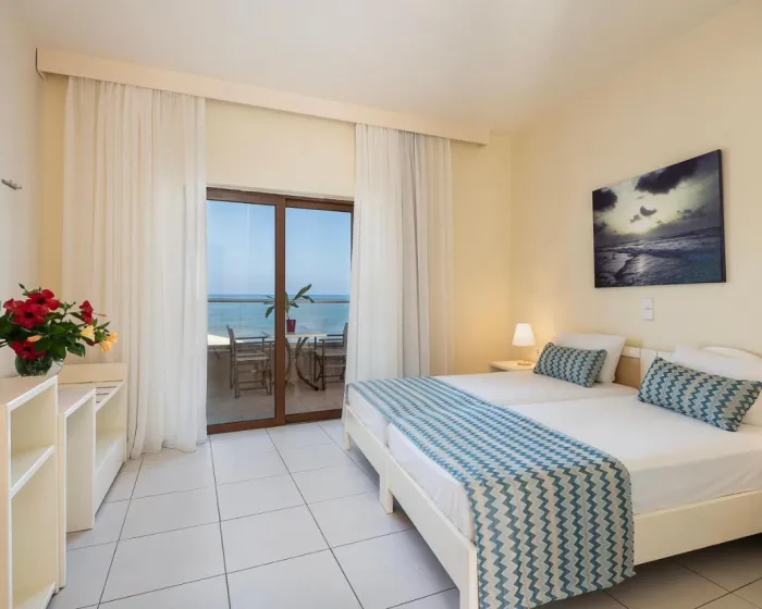 Klima uređaj i centralno grejanje obezbeđuju da sobe održavaju udobnu temperaturu. Gosti mogu opustiti i uživati u pogledu na more sa balkona ili privatne terase nekih soba. Sobe imaju bračni krevet ili kauč na razvlačenje. Dostupne su odvojene spavaće sobe. Kreveti za decu i pomoćni kreveti mogu se zatražiti za mlađe goste. Takođe su dostupni sef i radni sto. Za goste koji se sami hrane, postoji dobro opremljena kuhinjica sa frižiderom, šporetom, aparatom za čaj/kafu i rernom. Takođe su obezbeđeni telefon, TV i WiFi (bez dodatne naplate). Kupatila su opremljena tušem, kadom i fenom za kosu. Kozmetički proizvodi i izbor peškira pružaju dodatnu udobnost u kupatilima. Hotel ima porodične sobe i sobe za nepušače.
