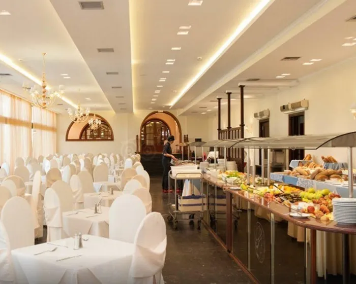 Različite opcije za obroke su dostupne, uključujući restoran, kafić i bar. Opcije ishrane uključuju polupansion i sve uključeno. Ukusan doručak daje gostima dovoljno energije za dan. Za ručak i večeru, gosti se samoposlužuju na bogatom bafetu. Hotel takođe nudi užine. Tradicionalno kuvanje pred gostima je posebna atrakcija. Hotel nudi izbor alkoholnih i bezalkoholnih pića.