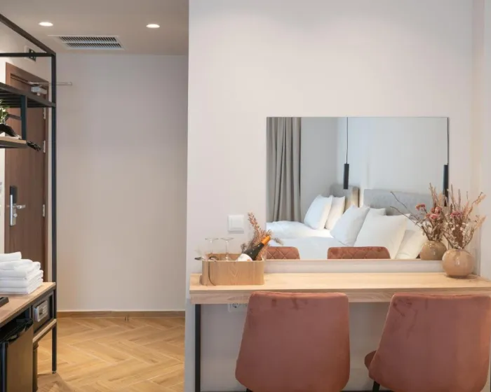 Sobe su opremljene klima uređajem i centralnim grejanjem. Sobe imaju bračni krevet i kauč na razvlačenje. Na raspolaganju su sef, minibar i radni sto. Pegla je obezbeđena radi praktičnosti gostiju. Takođe su dostupni telefon, televizor sa satelitskim/ kablovskim kanalima i WiFi (bez dodatne naknade). Kupatila su opremljena tušem i uključuju fen za kosu. Za dodatnu udobnost u kupatilima, gostima su na raspolaganju kozmetički proizvodi. Hotel ima porodične sobe i sobe za nepušače.
