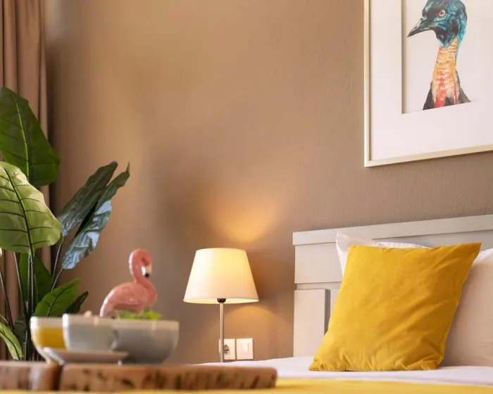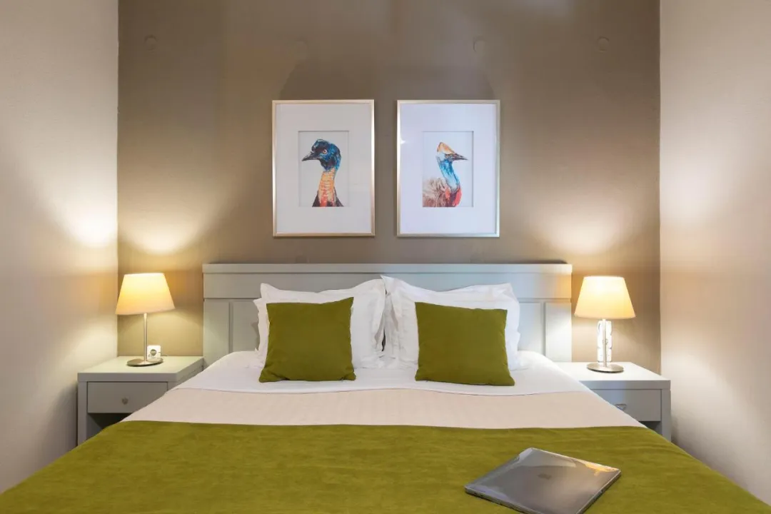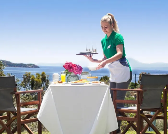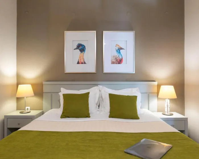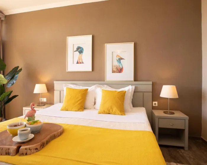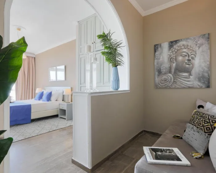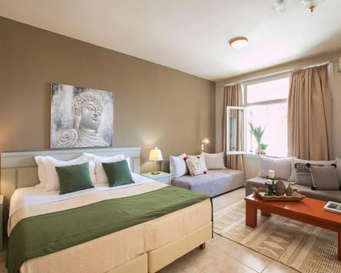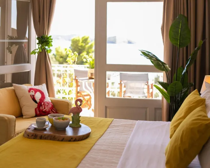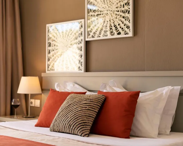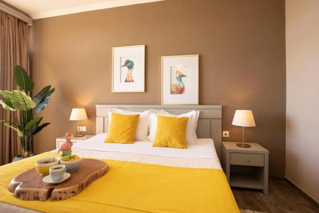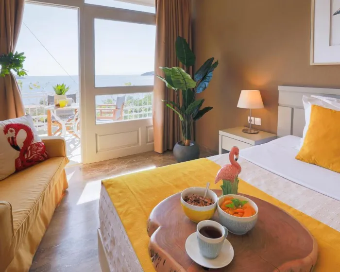 Sobe imaju dnevnu sobu i kupatilo. Klima uređaj obezbeđuje udobnu temperaturu. Gosti mogu uživati u pogledu na more sa balkona ili terase. Sobe imaju bračni krevet ili kauč na rasklapanje. Dodatni kreveti mogu biti zatraženi. Obezbeđen je radni sto. Gosti će takođe pronaći frižider među standardnim sadržajima. Takođe su obezbeđeni telefon, TV i WiFi (bez dodatne naplate). Kupatila uključuju fen za kosu i opremljena su tušem i kadom. Hotel ima porodične sobe i sobe za nepušače.
