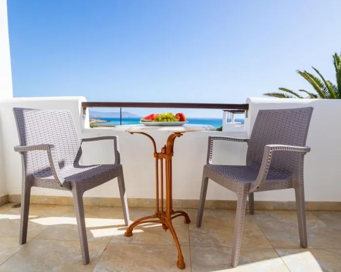 Klima uređaj i centralno grejanje osiguravaju da sobe održavaju udobne temperature. U većini jedinica, gosti mogu uživati u pogledu na more sa balkona ili terase. Sobe sadrže bračni krevet. Kreveti za decu i dodatni kreveti mogu se zatražiti za mlađe goste. Sef pruža sigurno čuvanje lične imovine gostiju. Dodatne karakteristike uključuju frižider i mini frižider. Takođe su obezbeđeni TV i WiFi. Gosti će takođe pronaći papuče u svojoj sobi. Kupatila su opremljena tušem i fenom za kosu. Hotel ima porodične sobe i sobe za nepušače.